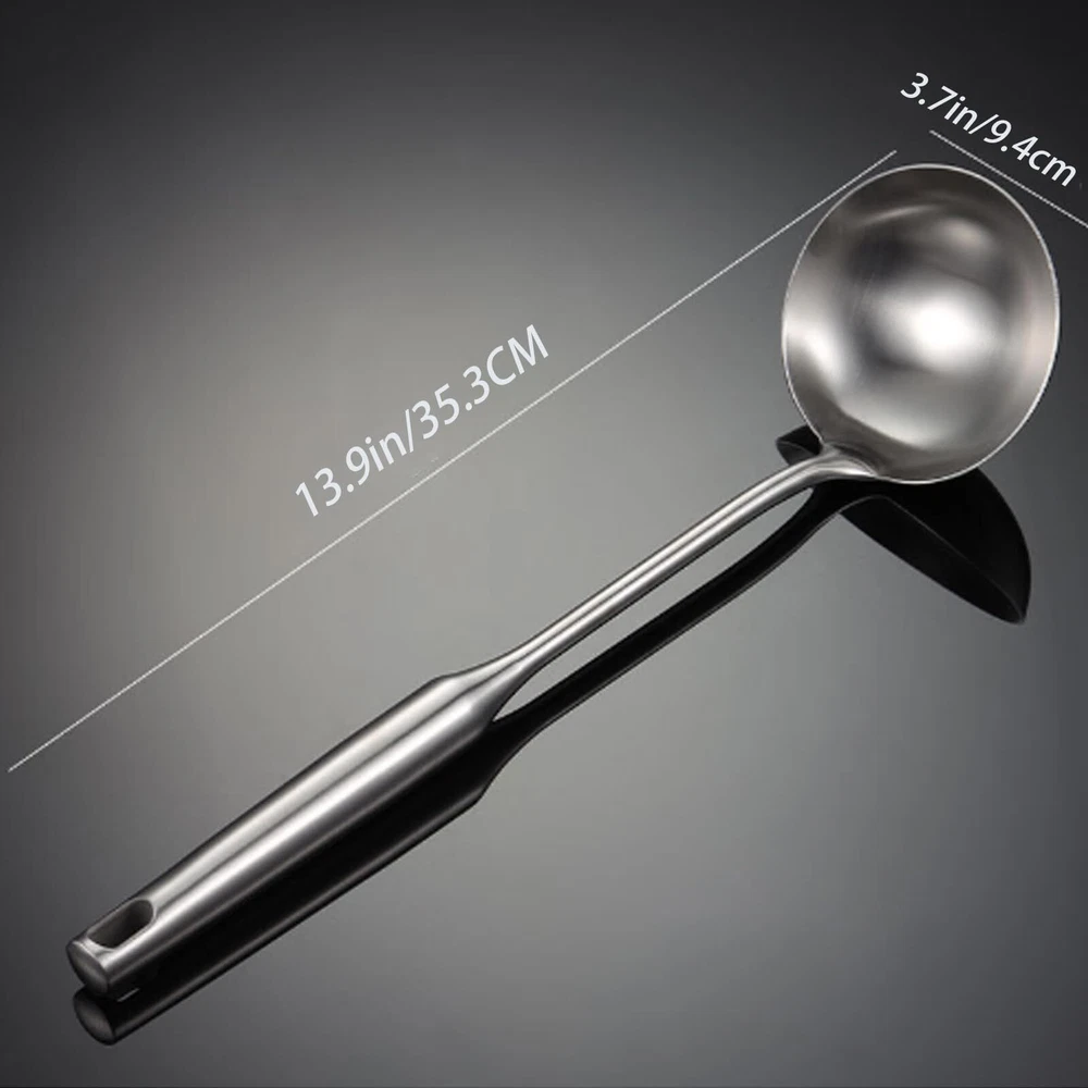 Soup Ladle,304 Stainless Steel Soup Spoon Cooking Spoon for, Suitable restaurant, home soups stews in the kitchen, porridge, dumplings, etc A great gift for mum, chefs, or cooking lovers MATERIAL: Soup Ladle Made of food 304 stainless steel rustproof, durable and will last long SIZE:Product Dimensions 13.9Inches long, 3.7Inches wide, Capacity About 3.5oz/100ml Use:Suitable restaurant, home soups stews in the kitchen, porridge, dumplings, etc A great gift for mum, chefs, or cooking lovers Design:Integral Forming Avoid food hygiene caused by residual sewage in the gap afte The extra long handle is ergonomically designed to be easy and comfortable to use, and has a convenient hole in the handle to provide a firm grip for easy storage after us Easy to clean dishwasher safe. WARM NOTICE:Please Confirm Carefully Whether The Size You need Before Buying,If You Have any Question,Please us. We Will Reply in 24 Hours!