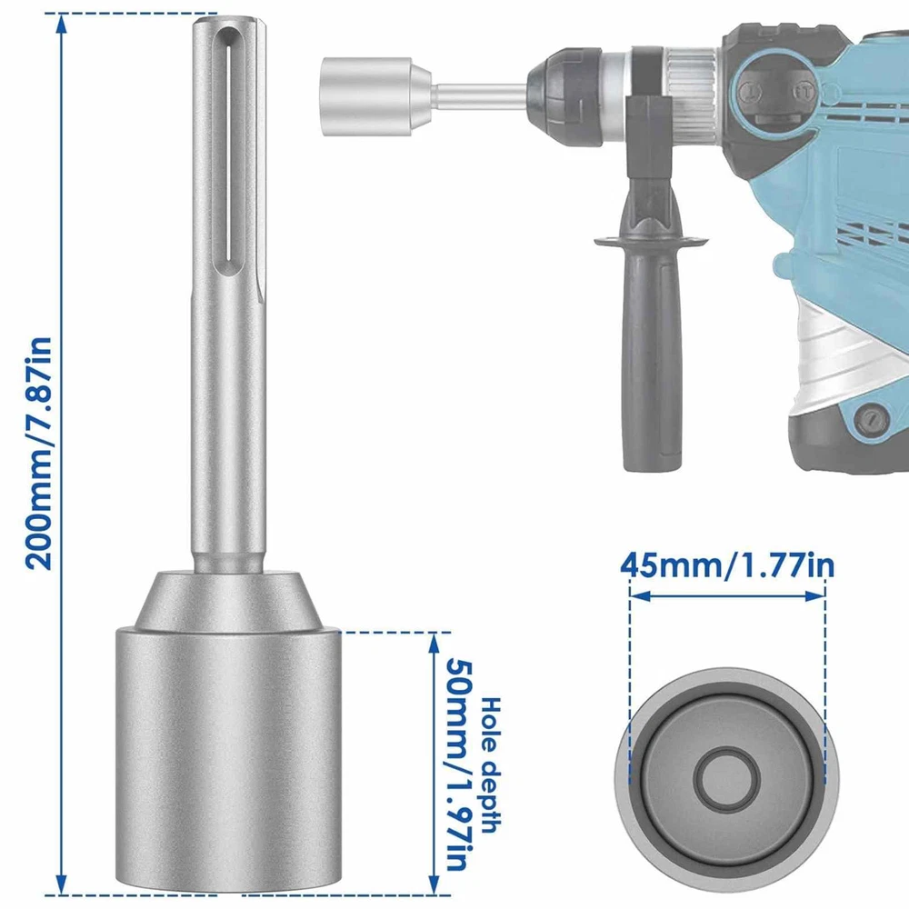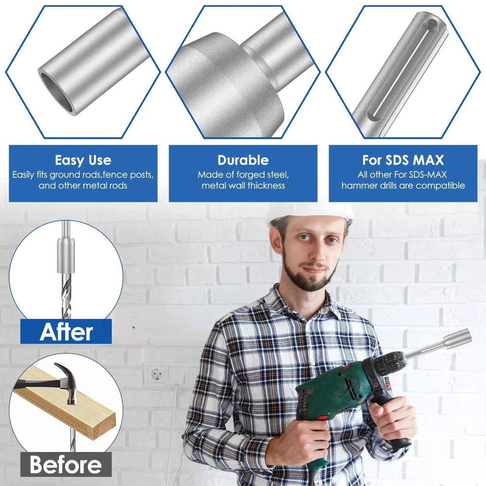 Product Description 30/45/65mm Forged Steel SDS-Max Shank Ground Rod Driver Drill Bit Driver Features: Industrial-Grade Durability: Crafted from robust forged steel, this ground rod driver boasts unmatched durability and longevity. Its high hardness and strength ensure it withstands heavy-duty use, while its wear and impact resistance keep it performing at its peak. Plus, its rust-proof design guarantees years of reliable service. Tool-Free Installation: Experience the convenience of effortless installation and disassembly with this ground rod driver. No additional tools are required, saving you valuable time and effort. The metal-walled bit driver is engineered to withstand intense impacts, ensuring a secure fit and long-lasting performance. Efficiency Boosting Design: Say goodbye to time-consuming installation methods. This practical tool eliminates the need for sledgehammers and wooden boards, streamlining the installation of grounding rods, small fence posts, and electric fence posts. Its ergonomic design and easy-to-use features enhance productivity and ensure a faster, smoother workflow. Safety-First Approach: Safety is paramount when working with grounding equipment. This ground rod driver prioritizes user safety by providing a safer, more efficient way to install grounding components. Its durable construction and easy installation process reduce the risk of accidents and injuries, allowing you to work with confidence and peace of mind. Universal Compatibility: The SDS-Max ground rod driver is designed to work with almost all brands of SDS-Max system rotary hammers and hammer drills, ensuring compatibility with your existing tools and reducing the need for additional equipment. (Not compatible with tools that accept for SDS or for SDS-Plus) Specifications: Inner diameter: 30mm, 45mm, 65mm (Optional) Shank type: SDS-Max Shank diameter: 18mm Total length: 200mm Hole depth: 50mm Material: Forged Steel Color: Silver Gray Compatible Brands: For Bosch, for dewalt, for Hitachi, for Hilti, for Makita, etc. Package Included: 1pcs Ground Rod Driver About Us Welcome to the our store! You can chat with us about anything to do with our products. we dedicated to provide best products and services. Payment All ebay verified payments are accepted, if you have any questions about the payments, you can let us know, we will try our best to solve this for you. Shipping We usually ship all packages within 24 hours after payment and 48 hours at latest for a small part of our products. Returns Always believe we can solve your questions about our products with communication. And if it comes to a return at last, the item must be intact and the same condition when you received it, also the return is only available within 30 days after delivery. Contact Us You can contact us at any time via ebay messages, we will reply at the first time in the working times. We will always be here for you! Working time: 9am to 6pm, Monday to Friday. You may also like New High Quality Sapphire Watch Glass Replacement Part For Casio MDV-106 24.99 USD 3.69 USD 100Pcs Microphone Pop Filter Hygiene Mike Foam Cover Odor Removal Disposable 13.96 USD 4Pcs Upgrade Axle Arms With Motor(2A+2B) For E58 JY019 FPV RC Drone Quadcopter 13.99 USD 3.69 USD 1/4 Screw Adapter Mount Base With Screws For GoPro Max Hero 10 9 8 Black Camera 13.99 USD 3.69 USD Anti Snore NASAL DILATORS Stop Snoring CONES Breathe Easy NOSE Congestion 8.45 USD 3.69 USD 8 in 1 USB Programming Cable+Software CD For Motorola Baofeng Kenwood HYT Radio 15.95 USD 3.69 USD powered by
