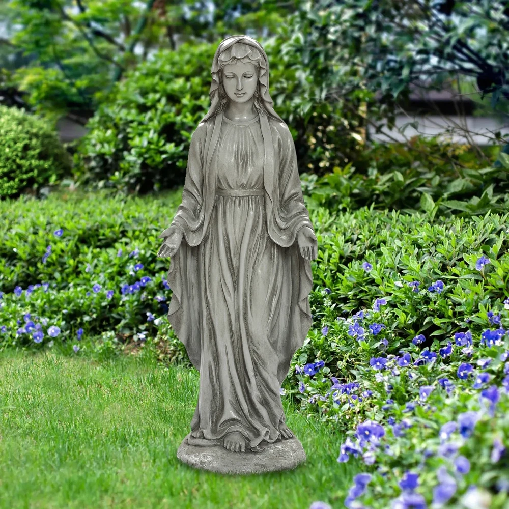 Winsome House is pleased to include the welcoming Mary statue to our collection. Let Mary welcome your guests to your home with open arms. The statue features a reverent Mary with hands open. Mary stands 2.5ft tall. MGO statuary suitable for outdoor use. The statue has a natural finish. Spray with hose, and wipe off any residue to clean.Type: Garden StatuesMaterial: Magnesium OxideSeason or Holiday: All SeasonsAssembly: AssembledColor: Grey Free Shipping Over $49.99* Details 30.5"H Virgin Mary Blessed Mother Outdoor Garden Statue Sculpture Product Description: Winsome House is pleased to include the welcoming Mary statue to our collection. Let Mary welcome your guests to your home with open arms. The statue features a reverent Mary with hands open. Mary stands 2.5ft tall. MGO statuary suitable for outdoor use. The statue has a natural finish. Spray with hose, and wipe off any residue to clean. TypeGarden Statues MaterialMagnesium Oxide Season or HolidayAll Seasons AssemblyAssembled ColorGrey