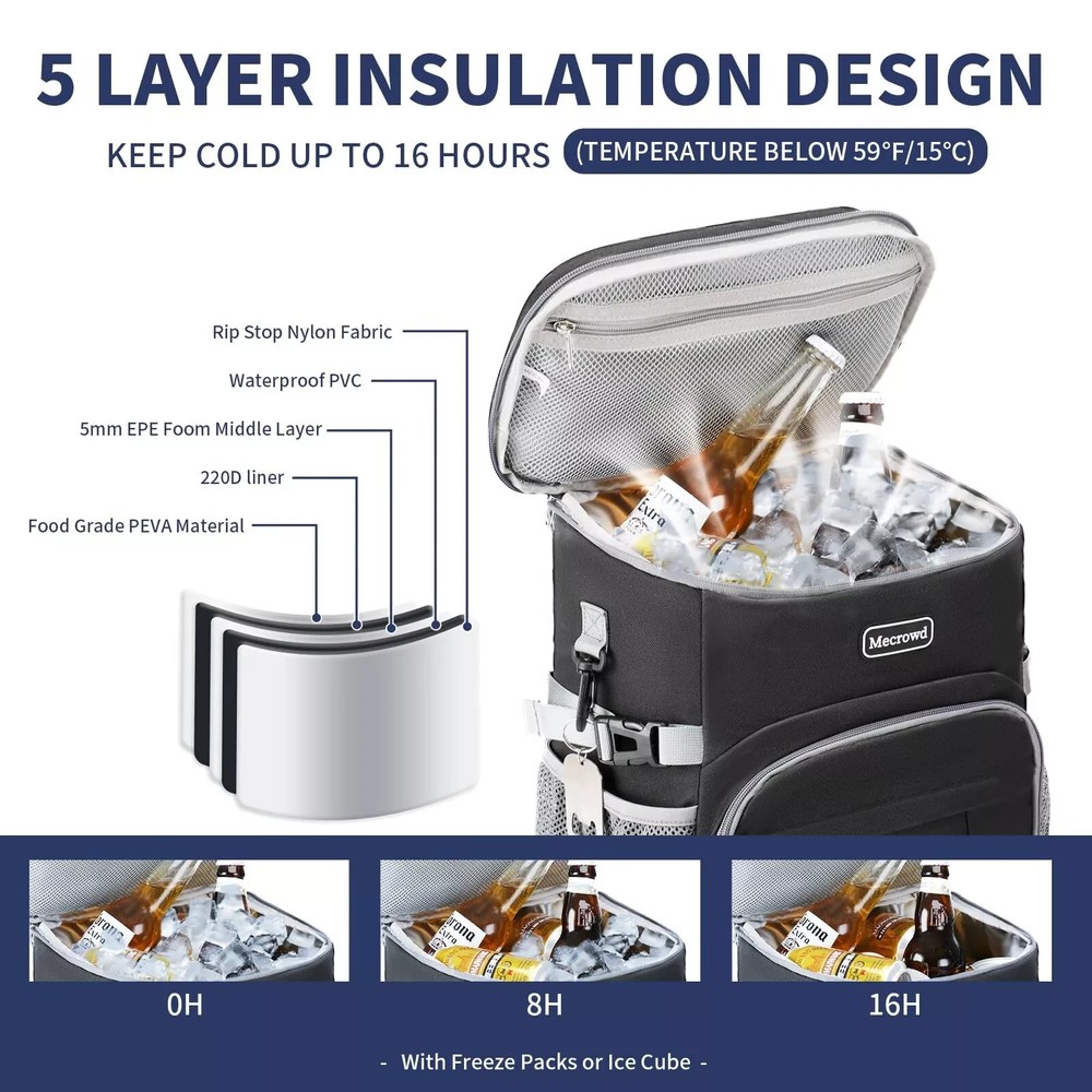 Cooler Backpack 30 Cans Lightweight Insulated Backpack Cooler Leak-Proof Camp... 🔍 Product Overview ⭐ Key Features Leakproof Cooler Backpack: High-density Insulation material and leak-proof liner inside the insulated backpacks work together to ensure anti-leaking and keep food hot / cold for 16 hours with ice packs Large Capacity & Multiple Compartments: Leak-proof backpack cooler:15”x 12”x 6”(LxWxH). Main bag can hold up to 30 cans (27 L). Maelstrom insulated backpack provides several pockets for handy storage and convenient organization. Spacious backpack packed with roomy zipper main compartment, 1 top zipper pocket,1 front zipper pocket, 1 front elastic rope net, 1 front cutlery storage bag, 2 mesh side pockets and a hidden back zipper pocket, 1 shoulder strap card pocket Multiple Pockets: 1 main roomy storage compartment, 2 side mesh pockets, 2 large front zipper pockets to keep utensils, 1 zipper pocket on the lid, 1 mesh pocket, and 1 beer opener on the strap Lightweight And Premium Quality: Made of waterproof, breather fabric, the best lightweight backpack with cooler for work, picnics, road beach trips, hiking, camping, cycling, a perfect present for men and women Multiple Functions: The stylish design of our insulated cooler backpack make it also can be used as a lunch backpack or daily pack. Perfect for lunches, picnics, work, or travel. 🚚 Shipping Information We ship to the address provided on eBay. Please ensure your address is correct before ordering. Orders are usually processed within 1-2 business days after payment. Average delivery time is about 3-7 business days, depending on your location. If you encounter any issues, please contact us immediately. 🔄 Return Policy We accept returns within 30 days of receiving your item. Please return the product in its original condition and packaging. 💳 Payment Methods We accept PayPal and all major credit cards for your convenience. 📞 Contact Us If you have any questions or need assistance, please send us a message through eBay’s message system.