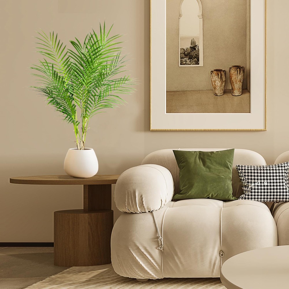 Pet & Child Safe. Made with fresh materials and exceptional quality in terms of color, texture, and materials. Instant Beauty. Ideal for adding a dash of natural green to any desktop, shelf, or counter space, so you can purchase with confidence. Modern Design. Cheerfull plant in the uniquely shaped, white ceramic pot creates a lovely tabletop centerpiece. A bright addition to any room. Easy Maintenance. Simply wipe clean with a dry cloth occasionally to keep your foliage looking fresh and fabulous. Easy Set-Up. Simply remove from the packaging and reshape to your liking. No tools or assembly are needed.