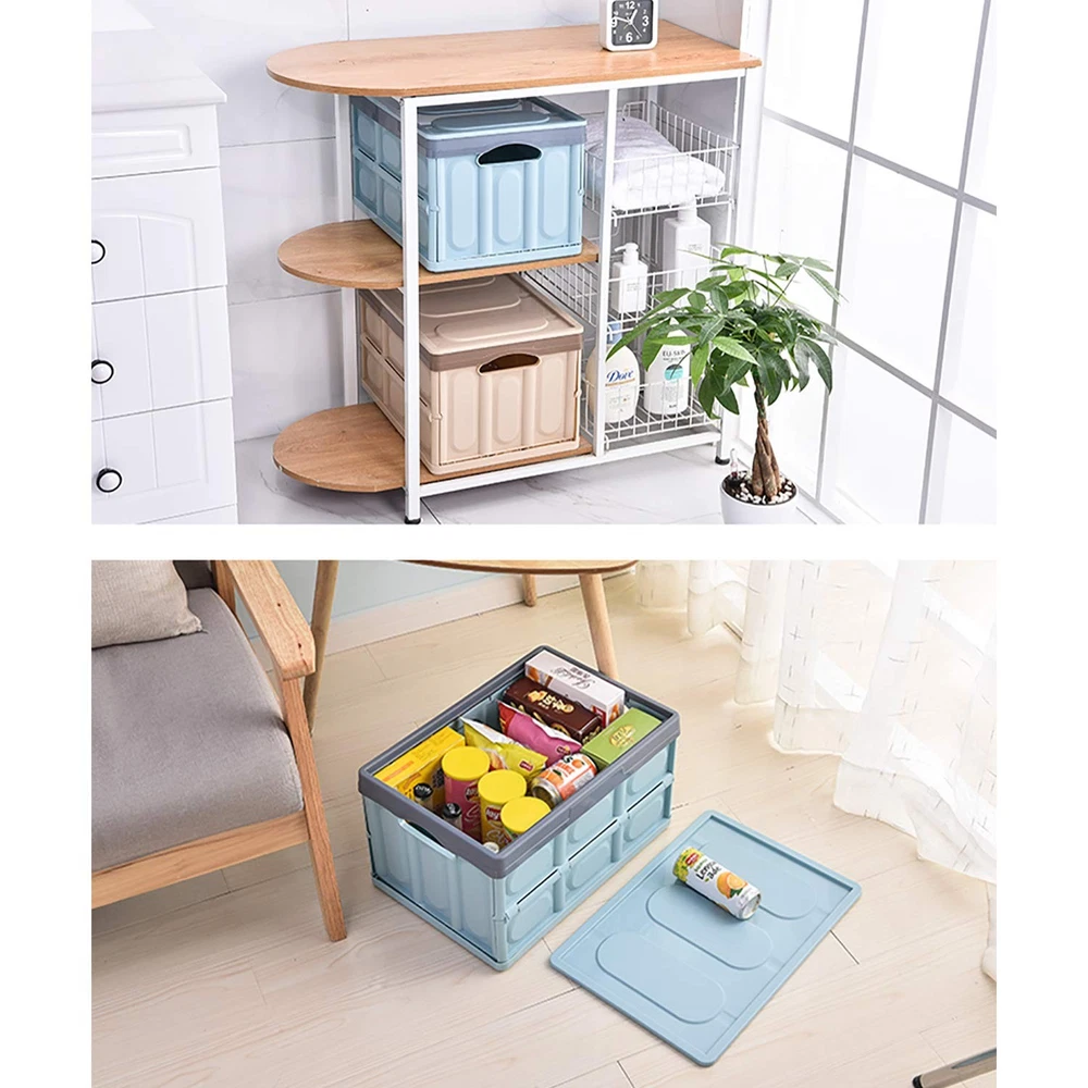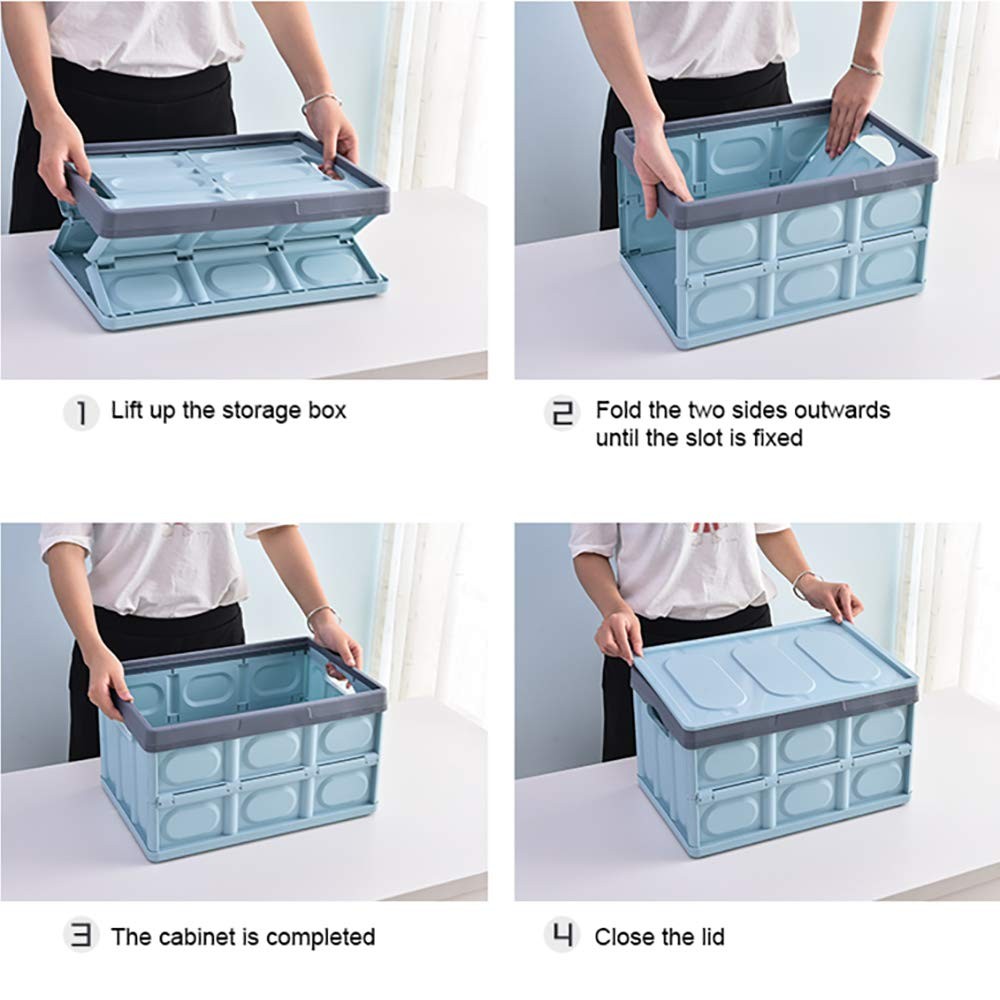 Lidded Storage Bins 2 Pack 30L Collapsible Storage Box Crates Plastic Tote Storage Box Container Whether you need to store Sundries in your living room, want to keep your gardening tools more organized in the garage, want an easy way to put vehicle essentials all in one place, there’s nothing easier to use that compact, space-saving Reusable Storage Boxes. Premium Collapsible Storage Box – Made of quality PP materials,this utility box is long-lasting durability, strength, lightweight and sturdy.It's a great helper for your home and outdoor activities. Multipurpose Storage Crate – Our plastic storage boxes are ideal for organizing closet space, keeping your vehicle trunk neatly arranged, or storing clothes, sundries, books,snack, Fruits and vegetables,shoe,bag... Large and Practical Design – The sides of each storage utility crate with easy-grip armrests, provides 30 liters of space for all kinds of personal items. Lidded design Storage Bins,safe storage, waterproof and dustproof. . Stackable Tote Storage Container - Several storage boxes can be stacked on top of each other. It can be stacked in multiple layers to save space and increase stability. You can organize and transport your necessary items more easily. Space-Saving, Foldable Design – These stackable folding collapsible storage bins can collapse completely flat to make them easier to store when not being used.It is also ideal for transporting objects on a trip. Perfectly suitable for various occasions - Put our plastic storage Organiser on the sofa, on the coffee table, next to the TV - to store small items (keys, remote controls, scissors)in the house. The storage baskets are designed for you. Sort and organize your and your family's clothing and any bedroom supplies. Your favorite skirt, scarf, bag ... Keeping everything tidy & clean. Package 2 × Collapsible Storage Box Crates with lid and buckles Multipurpose Storage Crate – Our plastic storage boxes are ideal for organizing closet space, keeping your vehicle trunk neatly arranged, or storing clothes, sundries, books,snack, Fruits and vegetables,shoe,bag Large and Practical Design – The sides of each storage utility crate with easy-grip armrests, provides 30 liters of space for all kinds of personal items. Lidded design Storage Bins,safe storage, waterproof and dustproof. Stackable Tote Storage Container - Several storage boxes can be stacked on top of each other. It can be stacked in multiple layers to save space and increase stability. With a load capacity of 10kg, you can organize and transport your necessary items more easily. Space-Saving, Foldable Design – These stackable folding collapsible storage bins can collapse completely flat to make them easier to store when not being used.It is also ideal for transporting objects on a trip. Premium Collapsible Storage Box – Made of quality PP materials,this utility box is long-lasting durability, strength, lightweight and sturdy.Environmentally friendly.