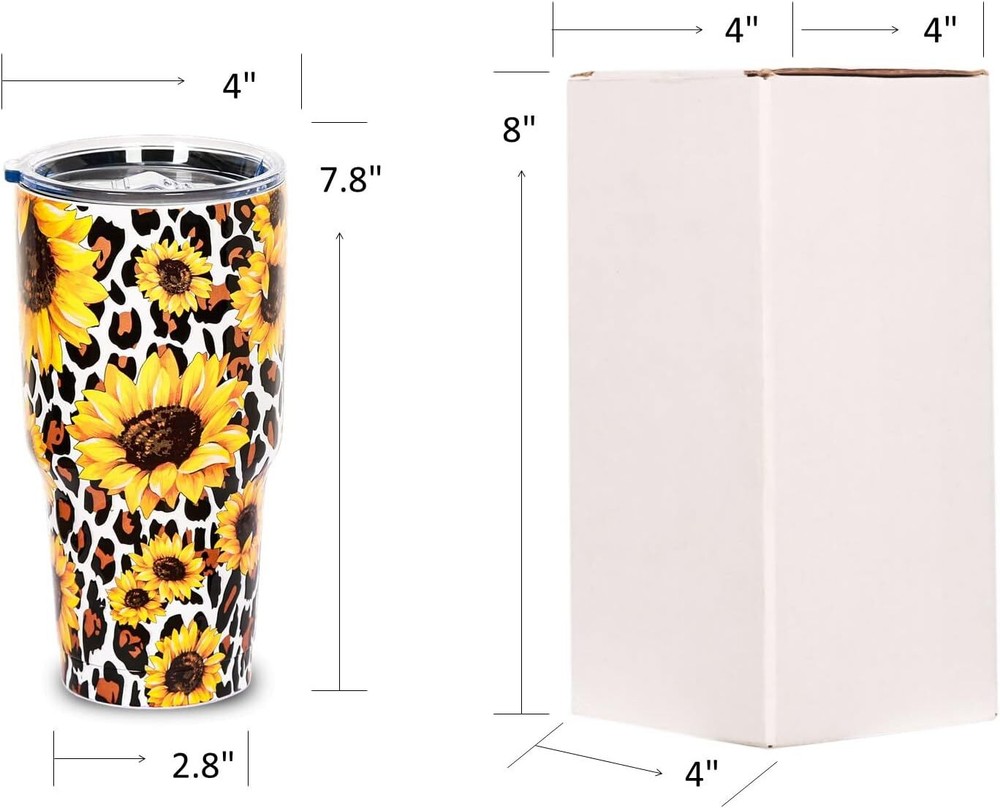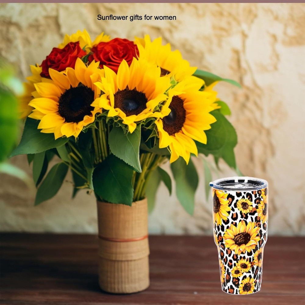 Product Description Sunflower christmas gifts for women Sunflower christmas tumbler, thanksgiving tumbler 30 OZ The sunflower tumbler is gift choice for collaboration, team colleagues and business events. Sunflower printing drinking cup. sunflower gifts for women. Sunflower coffee mug for travel Sunflower travel mug, sunflower tumbler. sunflower dring cup with lid This Leopard Print Sunflower coffee travel mug is designed for friends traveling and camping. The insulated mug features double-layer vacuum insulation to keep drinks hot or cold for a long time, making your trip more enjoyable. Sunflower fall tumbler for sunflwer favors Sports drinking tumbler. insulated cup for cold & hot long time This Sunflower Insulated Mug is designed for travel and camping enthusiasts. The 30 OZ tumbler features double vacuum insulation to drinks stay hot or cold for hours on end. Sunflower gifts by women for women Sunflower cups decor Sunflower decoration for wild camping, dining room, kitchen, office and bedroom. Make our daily life more passionate and romantic! Perfect sunflower tumbler for sunflower favors Sunflower mug, we will take your drink with this sunflower insulated cup with lid when we go out for sports, playing baseball, gym. cute sunflower gifts for favors Christmas gifts birthday gifts for sunflower lover, friends,kids,mother & father. The fun and whimsical sunflower print gifts design is sure to please any people. Beach lover drinking cup on the go, beach decor & kitchen items. Sunflower gifts for women 30 OZ tumbler with lid, sunflower travel mug on the go , sunflower office decor.kitchen items Sports mom gifts Fall tumbler for travel women