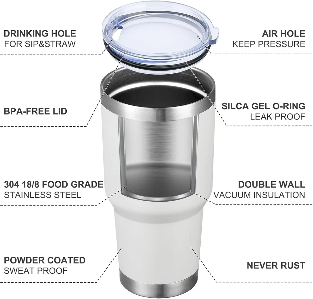 Store New Arrivals Add to Favorite View Feedback Contact 30Oz Tumbler Double Wall Vacuum Insulated Travel Mug, Stainless Steel Tumbler with Lid, Durable Powder Coated Insulated Coffee Cup for Cold & Hot Drinks (White,1 PACK) Description Style Modern Number of Items 1 Pattern Solid Theme Food Unit Count 1 Count Product Dimensions 3.93"W x 7.95"H Material Stainless Steel Capacity 1.9 Pounds Package Type Standard Packaging Age Range (Description) Adult Finish Type Powder Coated Specific Uses For Product Hot Drinks Included Components Lid Reusability Reusable Item Package Quantity 1 Item Weight 15.5 ounces Material Feature Insulated Occasion Father's Day Special Feature heat preservation, cold insulation, heat insulation Color White Shape Round Recommended Uses For Product Home,Travel,Outdoor Material Type Free BPA Free Product Care Instructions Hand Wash Only Size 1 Count (Pack of 1) DOUBLE WALL VACUUM INSULATION: Enjoy Beverage Cold or Hot.Under normal temperature, it can keep a tumbler of ice cake for 12h until the ice totally melt, or hot coffee warm for 6h MATERIAL DURABILITY:18/8 food grade stainless steel body,NO BPA, healthier than plastic cup. The insulated tumbler never sweat due to the Vacuum insulated design. Powder coating on the outside fits more comfortably in your hand, looks good, anti-slip EASY CLEANING: hand washing is recommended, electro-polished interior doesn't transfer flavor no metal aftertaste, you don't have to worry about your morning coffee or afternoon teas being ruined APPLICABLE TO VARIOUS OCCASIONS:MEWAY vacuum travel tumbler great for outdoor adventure, road trips, sports event, also the perfect travel cup to bring coffee from home to work or fill a tumbler of drink before you go to bed to drink through the night CUP HOLDER COMPATIBLE :MEWAY 30 oz Tumblers are sized to Fits most cup holders Product Description 1 18/8 STAINLESS STEEL 2 POWDER COATED 3 BPA-FREE LID 4 FIT FOR CAR CUP HOLDERS 5 Two Ways to Drink The video showcases the product in use. The video guides you through product setup. The video compares multiple products. The video shows the product being unpacked. Suitable for travelers, drivers, teachers, Mother's and Father's Day, Christmas, Thanksgiving, party cups When you get together with your family and friends in your sweet home, using our tumblers will make your happiness double Diversified, multi-style tumbler, which can not only effectively keep cool and warm, but also improve people's quality of life, make life more healthy and colorful POWDER COATED sweat proof,electropolished interior, durable powder coating 18/8 STAINLESS STEEL An electro-polished interior will ensure your cups remain pure, imparting NO unwanted flavors, giving you a clean tasting drink every time! DOUBLE WALL We have double layer temperature soyour drinks stay hotter even longer! BPA-FREE BPA-FREE LID,Defend your health. The cup lid has a small drinking port, and the straw can be used with it. The large diameter is easy to clean! PRODUCT COMPARISON Add to Cart Add to Cart Add to Cart Add to Cart Add to Cart Add to Cart Customer Reviews 4.7 out of 5 stars 4,297 4.6 out of 5 stars 1,824 4.7 out of 5 stars 1,155 4.4 out of 5 stars 695 4.3 out of 5 stars 119 4.2 out of 5 stars 807 Price $59.79 $ 59 . 79 $69.99 $ 69 . 99 $54.99 $ 54 . 99 $29.99 $ 29 . 99 $29.99 $ 29 . 99 $24.99 $ 24 . 99 capacity 30 oz 17 oz 12 oz 16 oz 40 oz 30 oz Material stainless-steel stainless-steel stainless-steel stainless-steel plastic plastic Vacuum Insulated ✔ ✔ ✔ ✘ ✘ ✘ Multiple Color Options ✔ ✔ ✔ ✘ ✘ ✘ REUSED ✔ ✔ ✔ ✔ ✔ ✔ ABOUT US We offer the best prices around on high quality products. Our E-store includes media such as books, movies, music and games while offering electronics, toys, sporting apparel, clothing, tools, general home, garden items and more. SHIPPING We are always working hard to ensure your package arrives as soon as possible. Please understand that some factors like weather, high postal traffic, and the performance of shipping companies are outside of our control. We offer free shipping to the lower 48 states and ship within 2 business days of payment, usually sooner. We do not accept P.O. Boxes. Please provide a physical address. For shipping outside of the continental USA, we only use eBay's Global Shipping Program.The item is shipped to KY and then sent to the rest of the world. International customers are responsible for all duties and taxes. Continue to check out in order to calculate costs for shipping the item to your country. Messages regarding eBay's Global Shipping Program MUST be directed at eBay EXCLUSIVELY. RETURNS We offer a 30-Day Return Policy on items which you are not completely satisfied with. You have the option for a full-refund or an exchange of the item. No returns are available on items shipped outside of the USA. PAYMENT We accept PayPal. CONTACT US This page content is yet to come Please ad us to your favorite seller and visit again later Thank You CUSTOMER SATISFACTION We try our very best to make sure every customer is completely satisfied. If there's a problem, message us! We're happy to help. WE ACCEPT Copyright © 2021 AutoDS. | All Rights Reserved