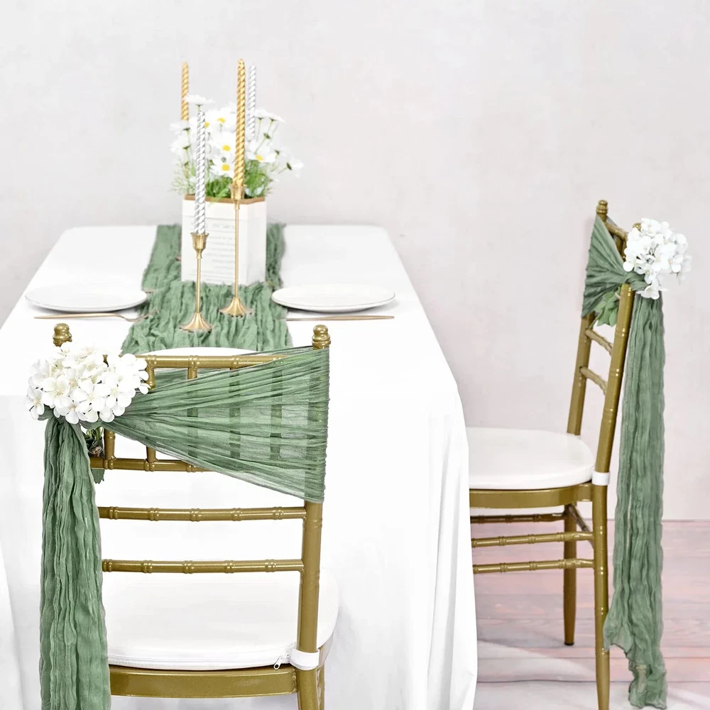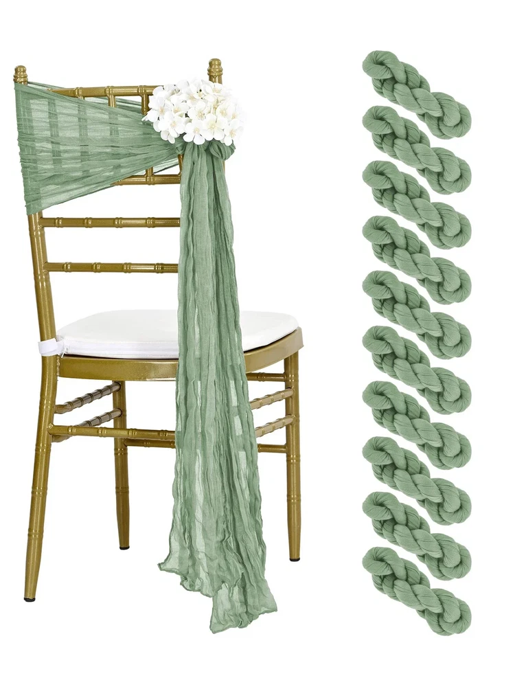 Package includes: You will receive 30 pack Sage Green cheesecloth chair sashes. Flowers are not included in the package. Each piece measures Length 275cm/108inch, Width 40cm/15inch. High quality healthy fabrics to decorate your dining environment. Cleaning and care: Chair sashes are durable and easy to care for. It can be hand washed and machine washed, but the water temperature should not be too high, it is best to wash in cold water. Bleaching will affect the texture of the chair sashes, so bleaching is not recommended. Do not expose to the sun after washing. Please keep away