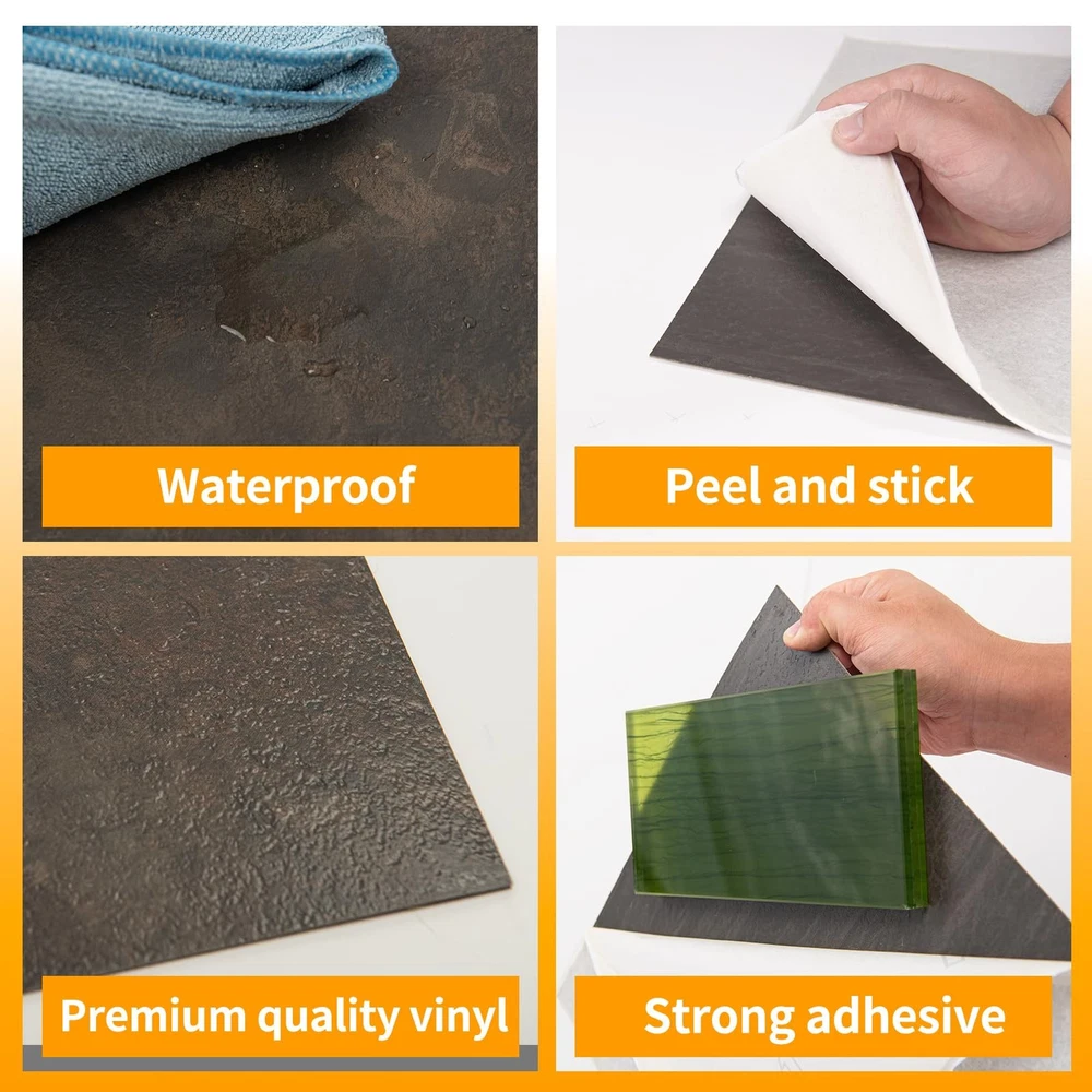 Whether you're renovating your home or simply looking to refresh your space, Vinyl Flooring is the perfect solution. Experience the luxury of real stone without the maintenance—transform your home with today. Quick and Effortless Transformation: Easily upgrade your space with our hassle-free peel and stick design; no messy glue needed! Premium Quality and Durable: Made from high-quality vinyl, our flooring tiles are waterproof and designed to last. Stylish and Practical: A fine sand-textured finish adds a touch of elegance and ensures slip resistance. Waterproof and Stain-Resistant: Perfect for busy households and high-traffic areas, our vinyl flooring tiles resist spills and stains. Elevate Your Home: Upgrade your living space with Vinyl Flooring, blending style with practicality for a standout home improvement.