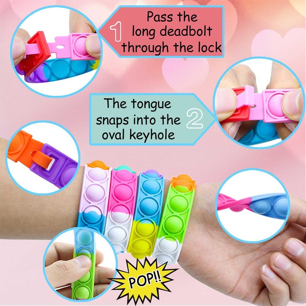 These pop fidget bracelets are a hit with the kids! Perfect for classroom Valentine’s exchanges—fun, colorful, and great for sensory play. The rubber is soft and stretchy, and the pack of 30 makes it easy for everyone to join the fun. Super cute and affordable, they’re a stress-relieving party favor that kids love. Highly recommend for school celebrations!