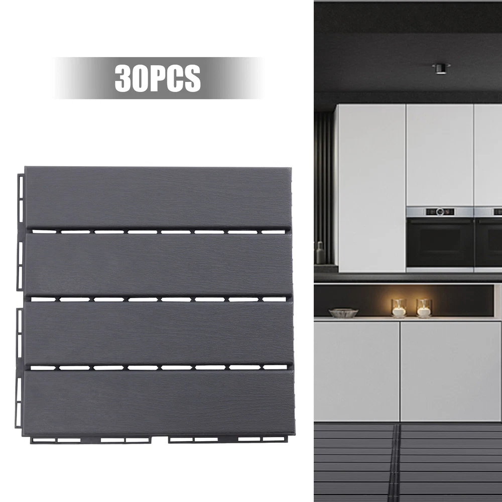 30Pcs 12'' Deck Patio Tile Interlocking PP Plastic Flooring Pavers Tiles Outdoor 30 Pack Interlocking Deck Tiles Description If you're interested in tackling your home project by yourself rather than paying a professional to build a deck in a few days, our interlocking deck tile is a great choice. It uses interlocking snaps for installation without any other tools, so it is very friendly for novices. You can use a saw or other cutting tool to cut it to the size you want to achieve different aesthetic effects. It can create an elegant and unique space for you. Key Features DIY Creation : You can use a saw or other cutting tools to cut the interlocking deck tile into the size you want to achieve different aesthetic effects. So, this is not only a tile but also a platform for your imagination. Level the Road : Using these interlocking tiles to lay areas that may become muddy or slippery after rain, such as potholes, gravel roads, muddy paths, etc. can make the road level and add more safety. Anti-slip : The gaps on each interlocking deck tile can increase friction and reduce the accident rate of slipping when the tiles are wet. In addition, the texture of the surface can also provide a good anti-slip effect. Easy to Assemble : Each interlocking deck tile is designed with interlocking snaps for easy and quick installation without any tools. You simply snap them together and the assembly can be done when you hear the click. High-quality Material : High-density PP has the characteristics of better stability, not easy to swell, and withstanding direct sunlight, heavy rain, and snowstorm, so it is suitable for year-round use. Easy to Clean : This interlocking deck tile is easy to clean and can be simply rinsed with a water gun and other cleaning tools. It is great for lazy or busy families and makes your life easier. Strong Pressure Resistance : It is made of high hardness PP and can withstand being run over by cars. Therefore, it is both suited for your indoor and outdoor needs. Versatile : Lay these dark gray interlocking deck tiles in your bedroom, garden or lounge will create a simple and luxurious feeling. It will match well with your other furniture. Efficient Drainage : Our interlocking deck tile is made up of 4 planes with 3 gaps, so it is not easy for water to accumulate. In addition to that, the hollow structure on the back further promotes drainage. 30 Packs in One : The whole set contains 30 pieces, which can cover an area of about 30sq.ft, so it can meet larger needs and is very affordable. Details Back Diamond Structure : The diamond structure design of the back not only increases friction to prevent slippage but also increases airflow space so that it is not easy to breed bacteria. Snap : Each interlocking deck tile has a rectangular nap design. Not only does it allow for a faster and safer installation but it also allows for a tighter connection between the floor tiles. Application They can be widely applied to both indoors and outdoors, like the deck, poolside, garden, balcony, lawn, backyard, greenhouse, and so on. Specification Model: PB-319 Material: PP Color: Dark Gray Shape: Rectangular Pattern: 4-Slat with Light Wood Grain Installation Method: Interlocking Package Size: 63*32*32.5cm/24.8*12.6*12.8in Each Product Size: 30*30cm/12*12in Thickness: 2cm/0.79in Gross Weight: 10.5kg/23.15lbs Net Weight: 9.7kg/21.38lbs Package Included 30 * Interlocking Deck Tiles Notes 1. When installing, please pay attention to align the snap and then press it hard. 2. Please allow the slight color difference caused by the shooting light and 1-3cm error due to manual measurement, and make sure you do not mind before you place the order. Payment Delivery details Terms of sales About us Contact us Payment We accept ebay payment 。 Fees such as import duties, taxes are not included in the item price or shipping costs. These charges are the buyer's responsibility. Delivery details Shipping: 2-9 working days to: USA Terms of sales We maintain high standards of excellence and strive for hundred percent customer satisfaction. Feedback is very important to us. We hope that you contact us immediately before you give neutral or negative feedback, so that we can address your concerns. It is impossible to address issues if we do not know about them! About us Your satis faction is our ultimate goal. We work hard to earn your trust and future business. Our certified technicians have tested each item before shipping. The unit comes with 1 year limited warranty on all manufacturing defects. a) If you receive a defective item, you may return it or ask for a discount. Please contact us within 14 days after you receive the package. b) What you returned must be intact and in its original packaging as re? u. Customer is responsible for shipping costs of the returned item. c) We will cover the cost of shipping back t with the shipping rate indicated in the registration page. We will send you a new unit or refund the full payment you paid. Thank you. Contact us Business Hour Business Hour: Monday To Friday: 8:30 AM to 5:00 PM (Beijing China time) Due to time zones, our reply to your questions may not be immediately. But within above working time, we will reply your email within 24 hours. If it's non-workdays, please kindly be patient and wait till Monday. Please contact us with ebay message. Please feel free to contact us if you have any questions. Monday To Friday: 8:30 AM to 5:00 PM (Beijing China time) Due to time zones, our reply to your questions may not be immediately. But within above working time, we will reply your email within 24 hours. If it's non-workdays, please kindly be patient and wait till Monday. Please contact us with ebay message. Please feel free to contact us if you have any questions. !Features Compact Design,Unique Appearance,High quality Characteristic Convenient Use,Easy Operation,Easy installation 2Featurtes Creative Design,Durable Material,Beautiful Appearance Features Durable Warranty. 3 