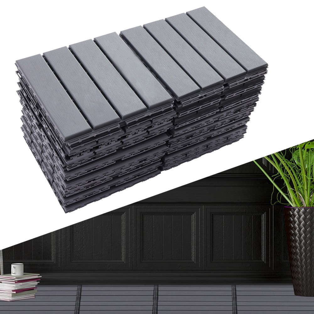 These interlocking deck tiles are a game-changer! Super easy to install—no tools needed, just snap them together. The dark gray wood grain looks stylish and realistic, perfect for sprucing up patios or balconies. Sturdy PP material holds up well outdoors, and the thickness provides great support. Shipping was fast, and the value for 30 tiles is unbeatable. Highly recommend for DIYers wanting a quick, affordable upgrade!