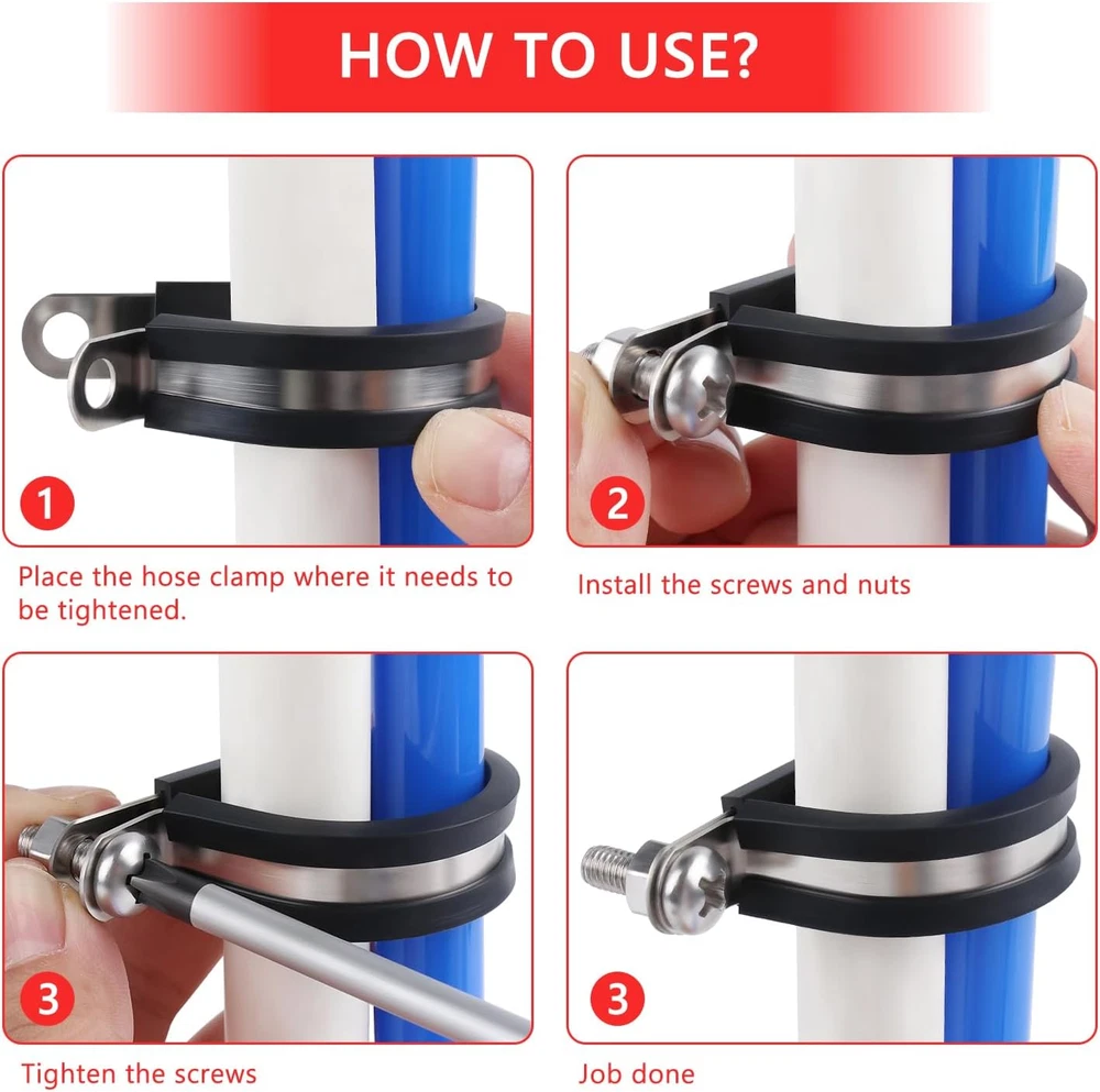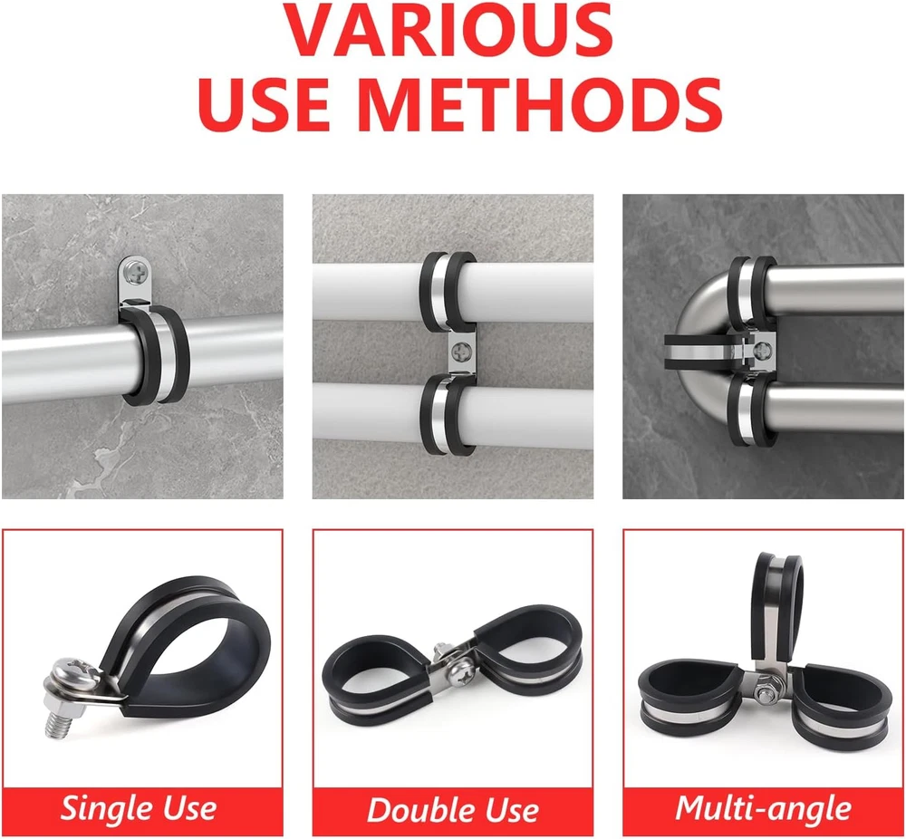 30Pcs Cable Clamps 1/2 Inch Stainless Steel Cable Clamp Rubber Cushioned Hose Cl