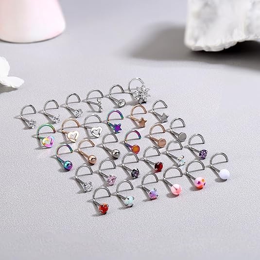 100% Money Back Guarantee if you are not satisfied with your purchase! ____________________ Description: 30Pcs Nose Rings Studs for Women Men 316L Stainless Steel Nose Piercings Jewelry 18G 20G Straight L Shaped Corkscrew Nose Rings Cubic Zirconia Created-Opal Nose Studs Hypoallergenic AFFORDABLE SET: Comes With 30 Pieces Of Nose Rings In A Variety Of Styles And Colors, CZ Nose Studs, Created-Opal Nose Studs, Ball Nose Studs And So On, Different Shapes To Meet Your Daily Needs And Replacements. QUALITY MATERIAL: Made Of 316l Surgical Steel, Healthy And Hypoallergenic, Gentle To Sensitive Skin. Not Easy To Bend And Deform, No Discoloration, No Rust. The Surface Of The Nose Stud Is Polished And Smooth, Comfortable To Wear. STANDARD SIZE: Screw Nose Studs Thickness: 18g (1.0mm), Pin Length: 7mm (0.28 Inch), CZ Size: 2.5mm And 3mm, Created-Opal Size: 3mm, Ball Size: 3mm. Different Sizes Meet Your Different Fashion Needs. VERSATILE USE: Nose Studs Can Be Used As Lip Rings, Cartilage Piercings, Nostril Rings, Nariz Stud Etc, Perfect For Daily Using. It'S A Gorgeous Gift For Yourselves, Lover, Friends On Birthday, Party, Anniversary Day, Valentine'S Day And More. ABOUT US: We’Ll Take Care Of Your Product If Any Damage To The Material Or The Workmanship Of The Jewelry Occurs( Not Cover Lost Items, Scratches That Come With Normal Wear, Improper Use Or Storage Of Your Product). Just Contact Us And We'll Work Together To Find A Perfect Resolution. ___________________ 100% Money Back Guarantee: We offer 30 Day Money Back Guarantee from the day you purchased if you’re not satisfied with your product. If you have any questions about our products, please contact us as soon as possible. Customer satisfaction is our absolute priority. Shipping: We are always working hard to ensure your package arrives as soon as possible. Please understand that some factors like weather, high postal traffic, and the performance of shipping companies are outside of our control. We offer free shipping to the lower 48 states and ship within 3 business days of payment, usually sooner. We do not accept P.O. Boxes. Please provide a physical address. You will be notified via eBay messages as soon as your items ship. Delivery: We will ship out the item in 2-3 working day after receiving the payment. Usually the delivery takes 2-5 business days. If you don't receive the items after 10 days, please feel free to contact us. You will get a replacement or a full refund. Please DO NOT open a return request or leave negative feedback without asking for help. Returns (Get Free Return Label): We offer a 30-Day Return Policy on defective/wrong items or items which you are not completely satisfied with. You have the option for a full-refund or an exchange of the item. No need to buy eBay return label. Contact us via eBay messages and get free return label. Returned items must be in all of the original packaging and include all of the original accessories or items that came with it. The item and package should be in original condition. Contact Us: Any queries or issues incurred, please feel free to contact us via eBay message, we will get back to you within 24 hours. Please DO NOT open a return request or leave negative feedback without asking for help. Feedback: Your feedback is very important to us. After you get your package and you are satisfied with our service, please leave us positive feedback. We are highly appreciated for your POSITIVE feedback and 5 stars. Enjoy shopping.