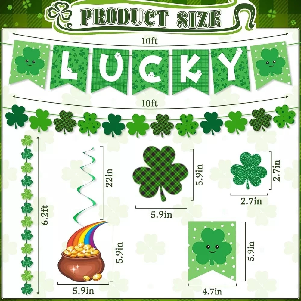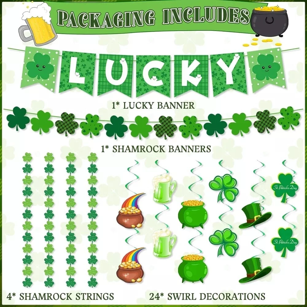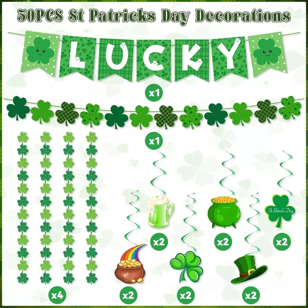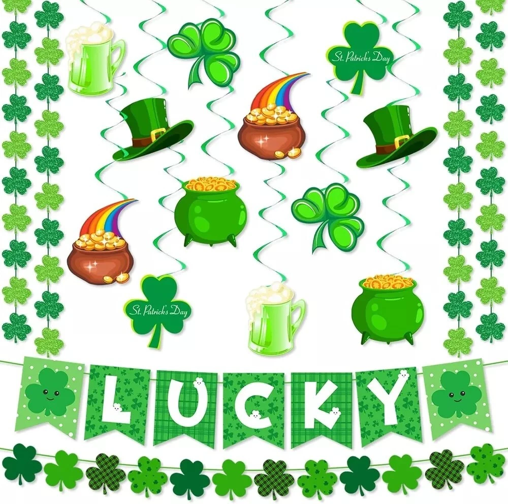 30Pcs St Patricks Day Decorations Lucky Banner Shamrock Garland and Green