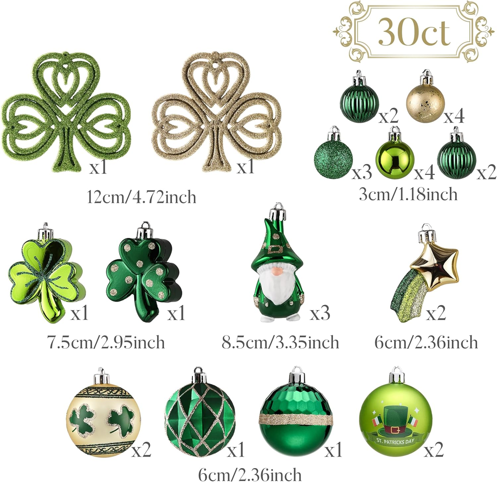 These St. Patrick's Day ornaments are absolutely charming! The emerald green and gold shamrock balls add a festive touch to any space. Perfect for home decor or party styling—durable, vibrant, and so fun. Love the Irish theme and quality details. Highly recommend for anyone celebrating!