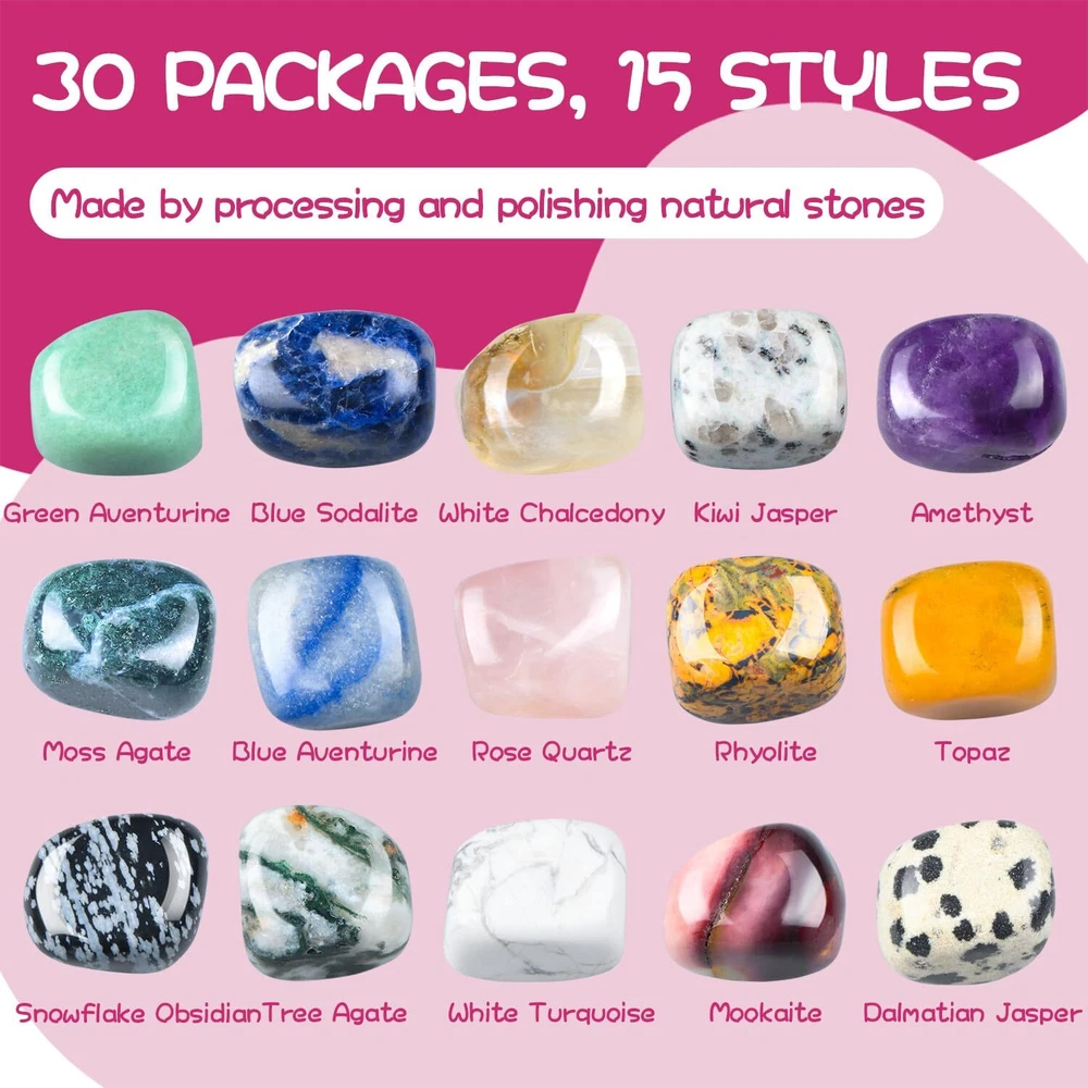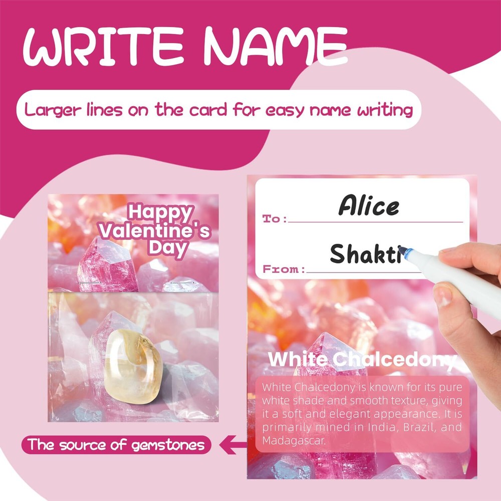 30 Pack Prefilled Valentines Day Gifts for Kids Pre-filled package includes 30 gemstones valentines cards with 15 unique styles Each card features a simple “Happy Valentine’s Day” on the front, while the back provides gemstone details and blessings, making it easy and enjoyable for kids to learn about rock crystal The gemstones are crafted from natural crystals, polished to perfection, and free from artificial dyes or additives, ensuring a safe and authentic experience Ideal for valentines classroom exchanges, sharing with friends and family, or collecting, these polished rock stones add a meaningful touch to valentine's day celebrations Perfect as class valentines day gifts for kids, this 30-pack combines heartfelt cards and natural gemstones to make celebrations extra special