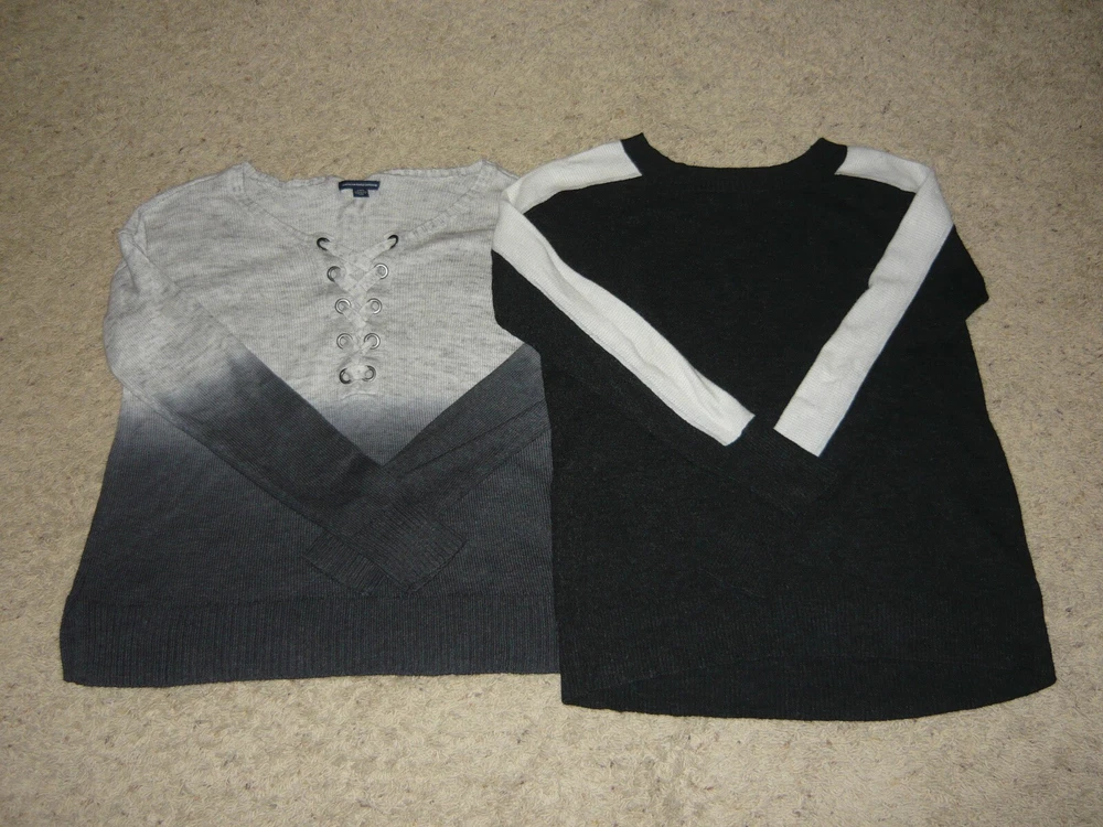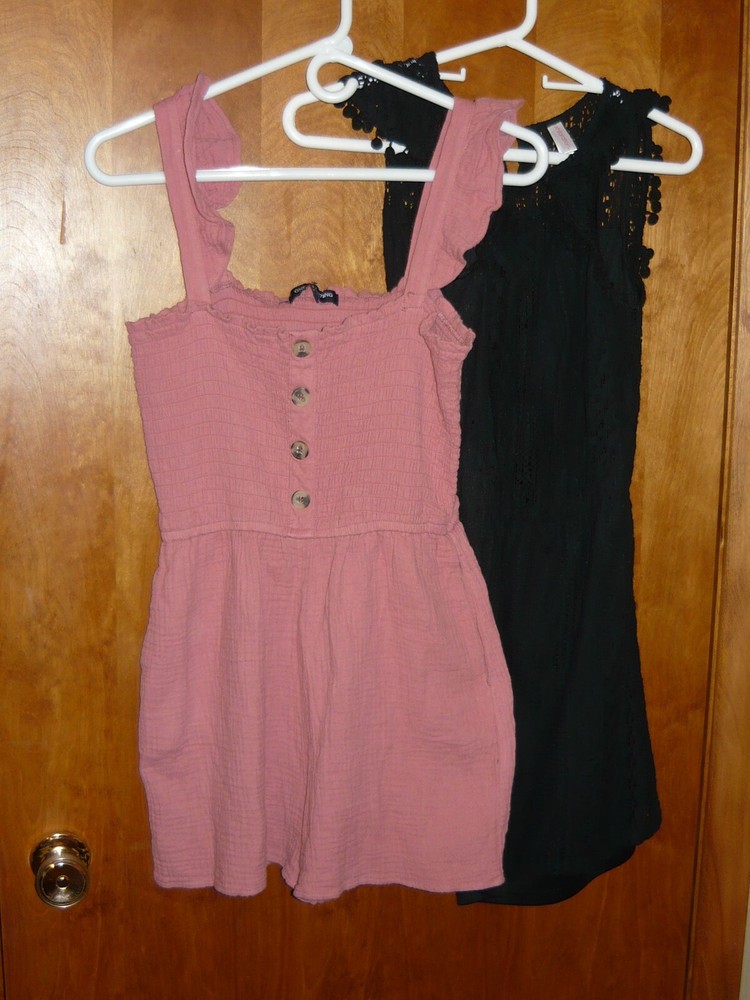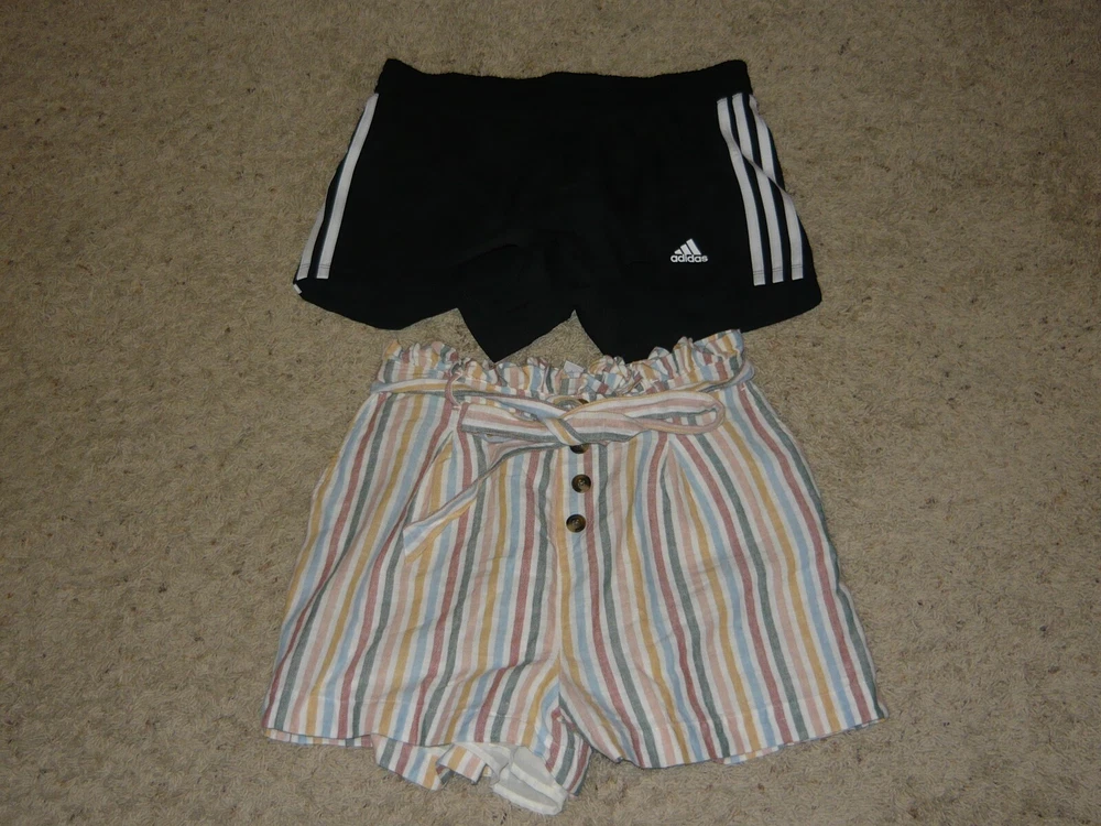 1. SO burnt orange short sleeve crop top, small 2. One Clothing pink romper, small 3. American Eagle striped shorts with ties, small 4. L.A. Hearts burgundy floral cropped top, small 5. Xhilaration black knit dress, small 6. Fila purple/gray fleece zip jacket, xs 7. The North Face gray zip jacket, small 8. American Eagle two tone gray sweater, small 9. American Eagle black/white sweater, small 10. Shein light blue/white floral top with ties, small 11. Hollister blue/white striped shorts, small 12. Hyfve yellow/white tank, small 13. American Eagle Mom jean, size 4 reg. 14. American Eagle jegging, size 4 reg. 15. American Eagle curvy highest rise jegging, size 2 reg. 16. American Eagle hi-rise jegging, size 0 short 17. Old Navy Santa lounge pants, xs 18. Under Armour dark gray joggers, small 19. Under Armour light gray joggers, small 20. Nike Pro navy blue compression shorts, small 21. Shein pink floral dress, small 22. Shein black stretch ruffle top, xs 23. Adidas black running shorts, small new with tags 24. Secret Treasures black/white polka dot lounge shorts, small 25. Wallflower denim shorts, size 3 26. Hollister denim shorts, size 0 27. Universal Thread light blue shorts, xs 28. SO black/white floral shorts, xs 29. H&M long sleeve floral blouse, xs 30. Blue Rain blue/pink floral dress, xs Smoke-free home. Please e-mail questions prior to purchase. SORRY NO INTERNATIONAL SHIPPING AVAILABLE. FLAT RATE SHIPPING FEE OF $24.99 TO ANY LOCATION IN THE LOWER U.S. 48 EXCEPT P.O. BOX ADDRESSES. Payment is due within 3 days from date of purchase. If you are not satisfied with your item, please contact us prior to leaving feedback. Thank you for looking!