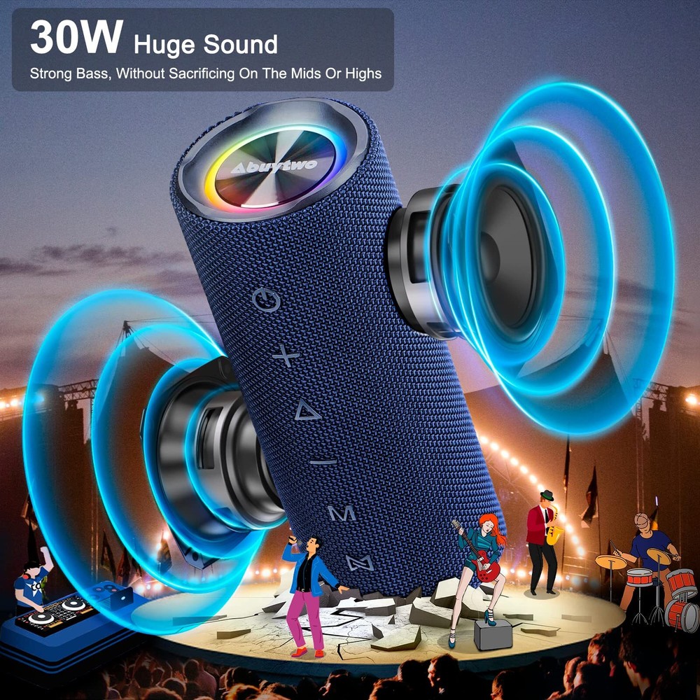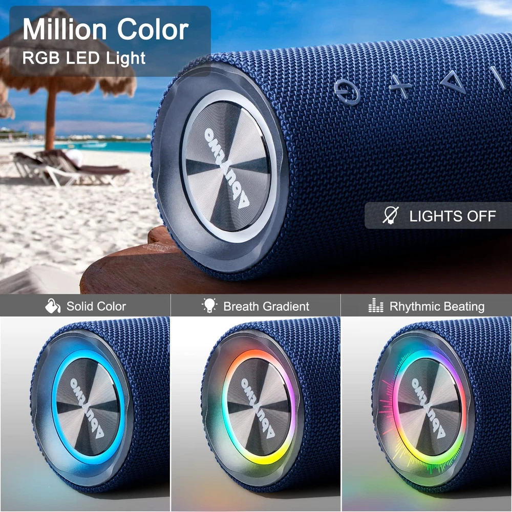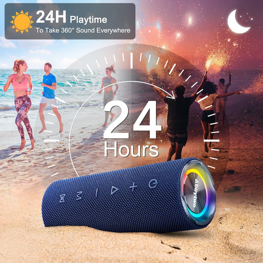 Abuytwo Bluetooth Speaker IPX7 Waterproof, Loud 30W HD Sound Wireless Speakers RGB LED Shower Speaker, Dual Pairing 24H Playtime Wireless Stereo Travel Speakers for Home Outdoor Kayak Beach (Darkblue) 【30W Huge Sound】 Compared to other speaker wireless that sacrifice sound quality for loud sound, Abuytwo Portable Bluetooth Speaker has a 37W driver, an advanced digital signal processor and dual passive radiators. It manages to sound more tonally balanced than much of the others, with bigger bass, more volume and better clarity, without sacrificing on the mids or highs. 【IPX7 Fully Waterproof】 This affordable speaker has IPX7 waterproof certification, which means this travel speaker can be submerged in a meter of water for up to 37 minutes and survive. So you can enjoy this truly waterproof bluetooth speaker in the swimming pool, beach, even in the rain, as a bathroom speaker is also a good choice and without worrying about the damage of speakers. 【Full-Day Battery Life】 Abuytwo bluetooth music speakers can be played for 24 hours per charge. Support Bluetooth / 39G TF Card / AUX play function, built-in MIC helps you enjoy hand-free calling. support for siri, Alexa, Assistant and other voice commands. Prefect speaker for Iphone, for Samsung, TV, computer, laptop and other bluetooth devices. It's ideal for a beach excursion or a little tailgating. 【Double Stereo Mode】 The chipset that powers the speaker has been upgraded (the speaker uses Bluetooth 5.7), with better digital signal processing. If you pair two of them together in stereo mode, the sound gets to a whole other level and fills a larger room with sound. They offer a truly immersive audio experience, especially when watching movies or playing video games. 【Portable Bluetooth Lights Speaker】 This portable speakers weighs just over one pound (0.5 kg), and comes with a detachable strap so you can attach it to your backpack or your bike's handlebars. It has a redesigned light show that syncs to the beat of your music, you can switch between 3 light modes or turn it off at any time. Order now and take advantage of our our worry-free 25-month warranty and friendly customer service. SHIPPING Domestic Buyers - We have confidence in our products, but if you are not fully satisfied please contact us within 30 days of purchase and you will get full refund. - We ship within 3 business days of payment, usually sooner - We offer FREE shipping on all orders! - We only ship to the lower 48 states, no APO/FPO addresses or PO Boxes allowed International buyers – please note: Import duties, taxes, and charges aren't included in the item price or postage cost. These charges are the buyer's responsibility. - Please check with your country's customs office to determine what these additional costs will be prior to bidding or buying. * Order Cancellation Policy ** You can return a product for up to 30 days from the date you purchased it. 1. The seller reserves the right to cancel the special case only due to eBay cancellation fee. 2. The decision of seller is the final. 3. The seller will respond to the cancellation request within 2 business days. Please wait for the result of cancellation. 4. In case the cancellation is not completed by some reasons, the buyer can follow the options below to get the refund. 4.1 The buyer can reject the item when it arrives. 4.2 The buyer can send the item back to the seller within 30 days If the buyer receives item (USA Shipment ONLY). The seller will provide the FREE return label to the buyer when the buyer opens " Return Item" case on eBay by using the reason as "Change my mind" ONLY. 5. When buyer has placed the order. The order will be processed and completed by automatic warehouse system within 5 minutes. In case that buyer sends the cancellation request after 5 minutes of placing the order, the request will be rejected. **Sending direct message to cancel the order is not allowed for every case.* Return Policy For the return case - If buyer would like to return the items for refund or replacement, please CONTACT SELLER to receive the free return label from seller. The refund or replacement will be processed with the tracking number of return label which is provided by seller only. The other ways of return which are not approved by seller will not be processed for the refund or replacement.