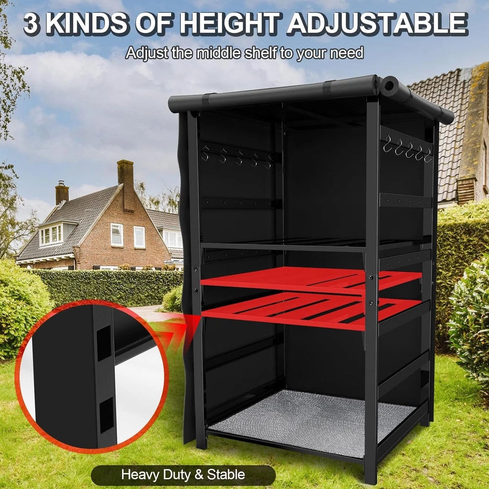 30"W x 26"D x 53" Storage Cabinet Station for Solo Stove Yukon/Bonfire/Ranger About this item 【Durable and Strong】- Portable solo stove station firewood rack made of high quality powder-coated. It has a strong carrying capacity can hold up to 300 pounds, with a double black powder-coated finish, optimal durability, sturdy, rustproof and Weather fastness 【Versatile Storage Solution】- The Upgraded firewood rack: 30"W x 26"D x 53" H, Perfect fit your Solo Stove Bonfire, Ranger, Yukon fire pits, Smokless Fire Pits, fire wood, logs, solo stove accessories and other fire pit accessories. One-stop storage solution 【Built for Your Convenience】- The middle shelf of solo rack is easy to adjust and disassemble, with 3 different height levels, you can adjust the height of the upper and lower space according to the storage needs 【Super Waterproof Material】- Firewood rack cover made of 600D durable fade-resistant waterproof polyester oxford fabric that won't tear easily and has an extra PVC liner. It can withstand strong winds, rain, storms, strong sunlight, dust, snow, etc. and stay clean 【Keep Wood Dry Effectively】- Firewood rack cover upgrade zipper system, more fit wood storage rack, with thicker waterproof mat, when you fully zip, moisture and rain more difficult to affect the interior. This wood rack and cover combination keeps the wood and fire pit accessories away from moisture and bugs in any season and rainy weather, effectively avoid rust and mildew caused by moisture 【Considerate Design】-With 10 J-hooks, you can put your fire pit tools, fire Pit poker, fire pits sticks and fire tongs together for quick use next time. Firewood rack cover with high quality Velcro, you can easily secure the rolled up waterproof cover, simple and practical 【Easy to Install】- Uniflasy wood storage racks is simple in structure. Without using any other tools, just need needs few minutes to piece these brackets together. Suitable for all-weather outdoor courtyards, this firewood rack outdoor with cover is the best choice Product Description Best Outdoor Fire Pit Storage Solution Outdoor Stove and Wood Storage Station with Waterproof Cover Storage station dimensions: 29.9x25.6x52.9 inches. Perfectly for solo stoves bonfire, ranger, and yukon models, and other fire pit less than 25 inches in diameter Package include: 1 x Storage Station, 1 x Waterproof Cover, 10 x J-hooks, 1 x Mositure-proof Mat. Detail Aout the Ourdoor Stove and Firewood Storage Station 10 J-hooks for hanging fire pit accessories 3 adjustable heights for center shelf adjustment Each shelf can hold up to 220 pounds. Vapor barrier moisture mat to keep your bottom firewood logs dry Detail Aout the Outdoor Fire Pit Storage Rack Cover Waterproof fabric that you can leave outside with confidence UV-resistant material, not easy to fade, do not worry about the sun, long-lasting durability Zipper design, easy to open and close, perfect fit for the rack to ensure the interior is dry Velcro design for easy access to parts or firewood Store Categories Store Categories Weber Weber Q Series Genesis 300( Side Controls ) Spirit 200 ( Front Controls ) Weber Charcoal Grill Genesis 300( Front Controls ) Weber Spirit 300 II Series Genesis II and LX 400 Series Spirit 300( Front Controls ) Spirit 200 ( Side Controls ) Spirit 300( Side Controls ) Weber Spirit 200 II Series Genesis II and LX 300 Series Grill Catch Pan Holder Nexgrill Charbroil Cooking Grates Grill Tool Performance Series Advantage Series Repair Parts Commercial Series Performance TRU-Infrared Grill Cover Fire Pit Decoration Fire Pit Decoration Fire Glass Beads Drop-in fire pit pan Gas Log , Fire Pit Blackstone Chargriller Coleman Dyna-Glo Grill Connectors & Hoses Big Green Egg Gill Tools Brinkmann Camp Chef Grill Master Kenmore Master Forge Other Handling time Return policy Payment details Handling time Will usually ship within 1 business day of receiving cleared payment. Return policy After receiving the item, contact seller within Payment details Store Categories Store Categories Weber Weber Q Series Genesis 300( Side Controls ) Spirit 200 ( Front Controls ) Weber Charcoal Grill Genesis 300( Front Controls ) Weber Spirit 300 II Series Genesis II and LX 400 Series Spirit 300( Front Controls ) Spirit 200 ( Side Controls ) Spirit 300( Side Controls ) Weber Spirit 200 II Series Genesis II and LX 300 Series Grill Catch Pan Holder Nexgrill Charbroil Cooking Grates Grill Tool Performance Series Advantage Series Repair Parts Commercial Series Performance TRU-Infrared Grill Cover Fire Pit Decoration Fire Pit Decoration Fire Glass Beads Drop-in fire pit pan Gas Log , Fire Pit Blackstone Chargriller Coleman Dyna-Glo Grill Connectors & Hoses Big Green Egg Gill Tools Brinkmann Camp Chef Grill Master Kenmore Master Forge Other 30"W x 26"D x 53" Storage Cabinet Station for Solo Stove Yukon/Bonfire/Ranger About this item 【Durable and Strong】- Portable solo stove station firewood rack made of high quality powder-coated. It has a strong carrying capacity can hold up to 300 pounds, with a double black powder-coated finish, optimal durability, sturdy, rustproof and Weather fastness 【Versatile Storage Solution】- The Upgraded firewood rack: 30"W x 26"D x 53" H, Perfect fit your Solo Stove Bonfire, Ranger, Yukon fire pits, Smokless Fire Pits, fire wood, logs, solo stove accessories and other fire pit accessories. One-stop storage solution 【Built for Your Convenience】- The middle shelf of solo rack is easy to adjust and disassemble, with 3 different height levels, you can adjust the height of the upper and lower space according to the storage needs 【Super Waterproof Material】- Firewood rack cover made of 600D durable fade-resistant waterproof polyester oxford fabric that won't tear easily and has an extra PVC liner. It can withstand strong winds, rain, storms, strong sunlight, dust, snow, etc. and stay clean 【Keep Wood Dry Effectively】- Firewood rack cover upgrade zipper system, 