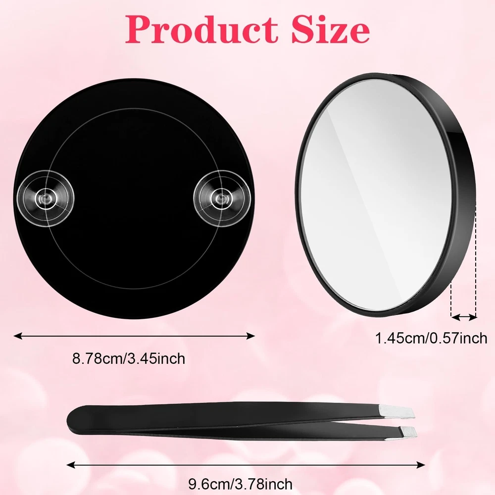 cobee Magnifying Mirror,30X Handheld Mirror with Suction Cup and 1 Tweezer 3.5 inches Stick on Shower Bathroom Precise Makeup Precise Blackhead Removal Small Mirror for Travel Product Details Brand: cobee Room Type: Magnifying Mirror Shape: Round Product Dimensions: 7.87"L x 3.93"W Frame Material: Acrylonitrile Butadiene Styrene (ABS) Brand: cobee Room Type: Magnifying Mirror Shape: Round Product Dimensions: 7.87"L x 3.93"W Frame Material: Acrylonitrile Butadiene Styrene (ABS) Style: Modern Mounting Type: Mirror Finish Type: Magnifying Mirror Surface Recommendation: Glass Special Feature: Magnifying Color: Black Theme: Travel Number of Pieces: 1 Number of Items: 2 Material: Stainless Steel, Glass, Acrylonitrile Butadiene Styrene Frame Type: Framed Item Weight: 1.36 Ounces Assembly Required: No Frame Color: Black Magnification Maximum: 30 x Manufacturer: cobee Item Weight: 1.36 ounces Country of Origin: China Item model number: 570234_1_16yuDJ4Hk Date First Available: February 21, 2024 Magnification for Your Beauty Needs: The power of the 30x magnifying mirror, is your go-to tool for tackling various makeup and skincare challenges effortlessly. With its incredible magnification, this mirror allows you to inspect clogged pores, remove blackheads, shape eyebrows and beards, check your skin's condition, and inspect makeup application with utmost precision. Say goodbye to any beauty concerns and hello to flawless results! Portable and Compact for On-the-Go: Measuring a mere 8.78x8.78x1.45cm/3.45x3.45x0.57in and weighing just 39g/1.36oz, our small travel magnifying mirror is lightweight and exceptionally portable. It easily fits inside makeup bags, pockets, and handbags, making it the perfect travel companion for situations such as fitness routines, bathroom touch-ups, and more. Take it with you wherever you go and enjoy the convenience and versatility it offers. Secure Placement with Double Suction Cups: Our magnifying mirror suction cup features two detachable suction cups on its back, ensuring a secure and reliable placement on smooth surfaces like mirrors or glass. Experience no hassle or slipping while using the mirror, as these cups possess perfect suction force. Enjoy peace of mind knowing that the suction cup mirror will stay in place, allowing you to focus on your beauty routine. Stainless Steel Tweezers for Precision Hair Removal: In addition to the magnifying mirror, this 30x set includes top-quality stainless steel tweezers. Suitable for both men and women, these tweezers are perfect for precise hair removal. Whether it's shaping eyebrows, defining eyelashes, grooming beards, or removing unwanted facial hair, these tweezers will provide you with the precision you need. Achieve that perfectly groomed look effortlessly. The Perfect Gift for Beauty Enthusiasts: Packaged in a simple white box, our mirror travel with stainless steel tweezers makes for an excellent gift choice on special occasions such as Mother's Day, Valentine's Day, birthdays, or Christmas. Whether for makeup enthusiasts or anyone who values flawless beauty routines, this gift will surely impress. Treat your loved ones to the ultimate beauty tool that they will appreciate and cherish. Package: 1 x Mirror 1 x TweezersSpecifications: Mirror specifications: 30 times magnification Using distance: 2.5-5cm/1-2in Installation method: suction cup Tweezer specifications: oblique mouthSize Detail: Magnifying glass: 8.78x8.78x1.45cm/3.45x3.45x0.57in Tweezers: 9.6x0.55x0.98cm/3.78x0.216x0.385in Colour: Black Material: Glass + ABS + Stainless SteelFeatures: 1. Circular design: The mirror adopts a circular design, with a simple and elegant shape. The round mirror can better show your facial features and contours, allowing you to apply makeup and retouching more accurately2. Bathroom suction cup design: The mirror adopts a bathroom suction cup design that can be firmly adhered to the bathroom mirror or glass. The suction cup has perfect adsorption force to ensure a stable and reliable fixing position, allowing you to use it with more confidence.3. The bevel tweezers are made of high-quality stainless steel, which has high hardness and durability. The bevel angle of the bevel tweezers can better match the natural grip angle of the fingers, making the operation more convenient and comfortable. You can more easily control the tweezers and accurately capture and treat hair in the target area. Angled tweezers are a practical auxiliary tool.