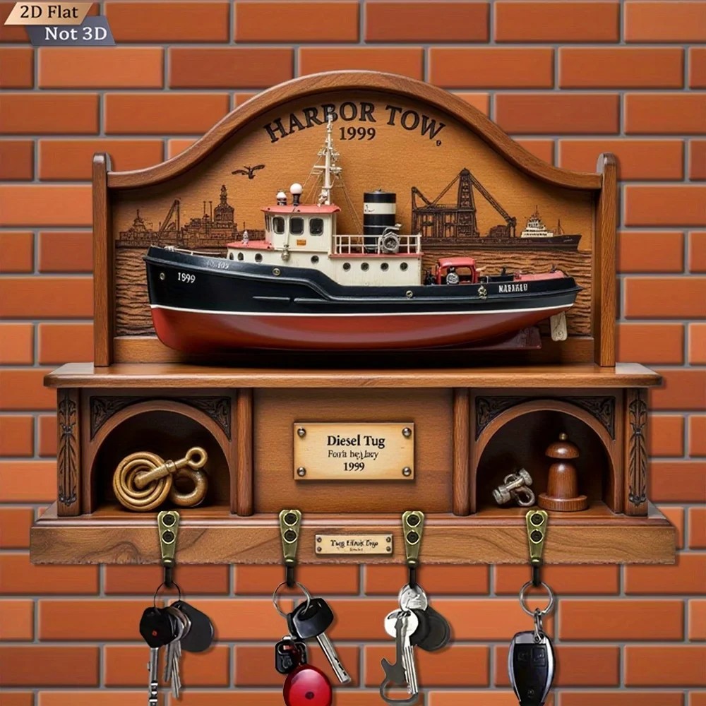 30cm Wall Key Holder β 2D Navigation Acl Boat 4 Hooks Entrance
