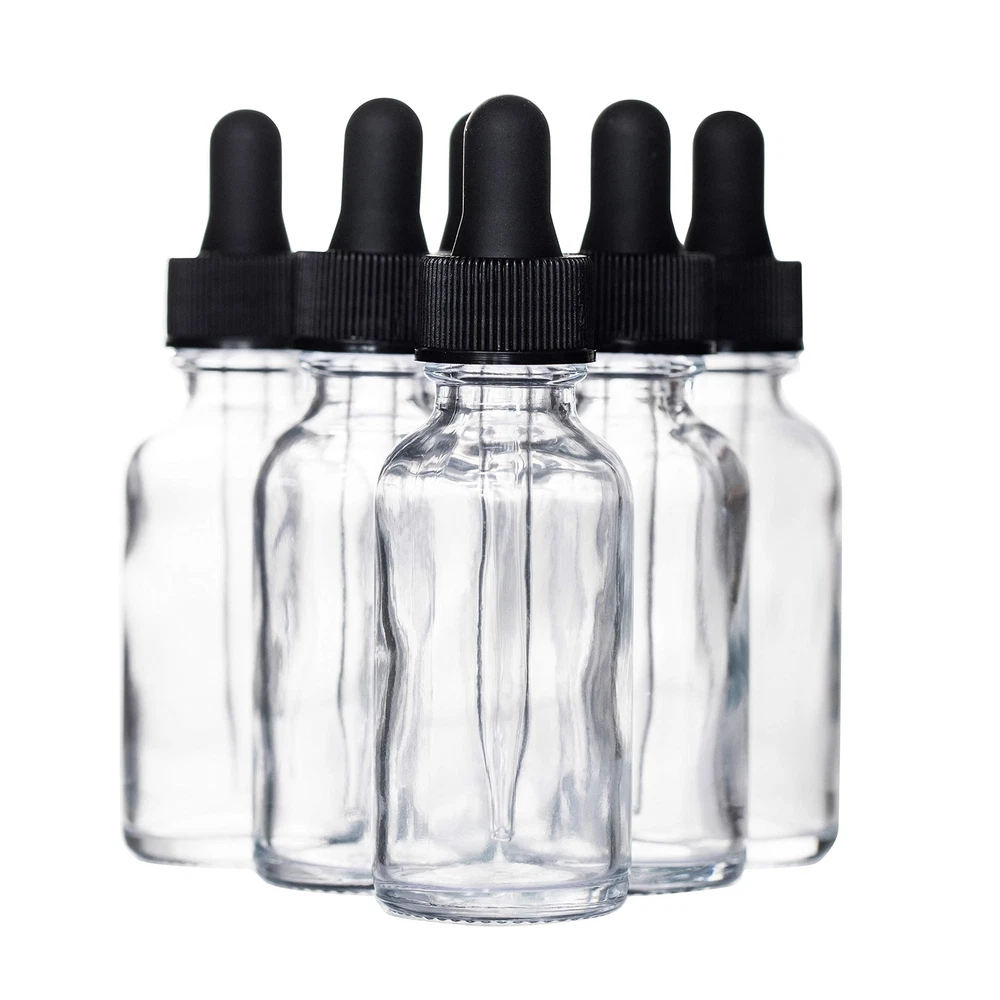 30ml (1oz) Clear Boston Round Bottle with Glass Eye Dropper, Pack of 6