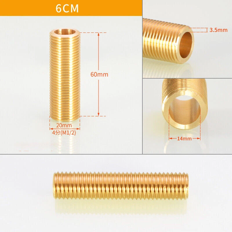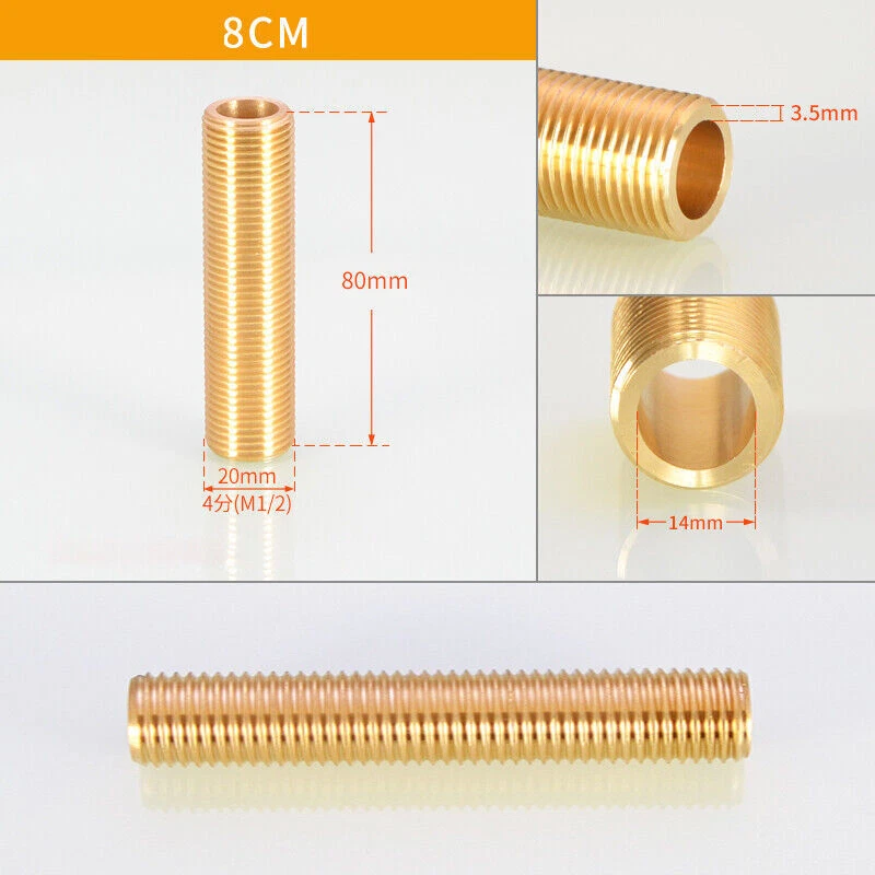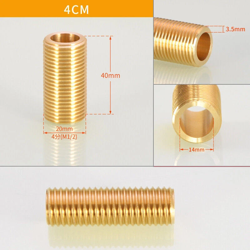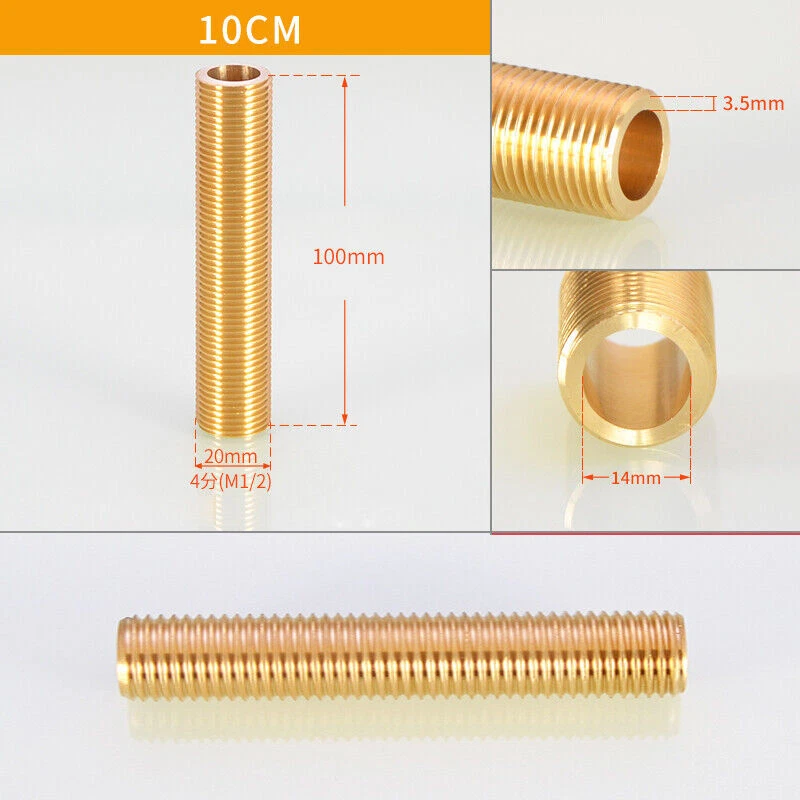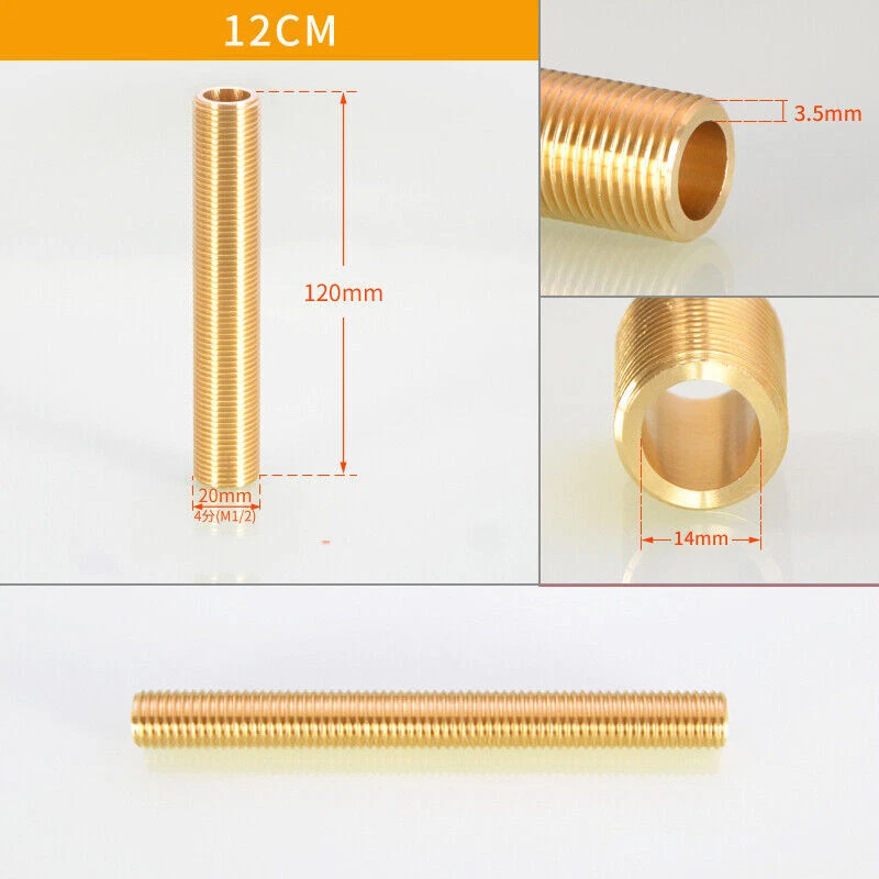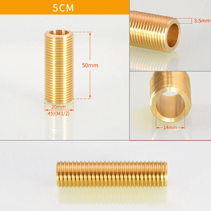 30mm -120mm Brass 1/2" All Male Thread Rod Bar Pipe Fittings Stud Connector Tube