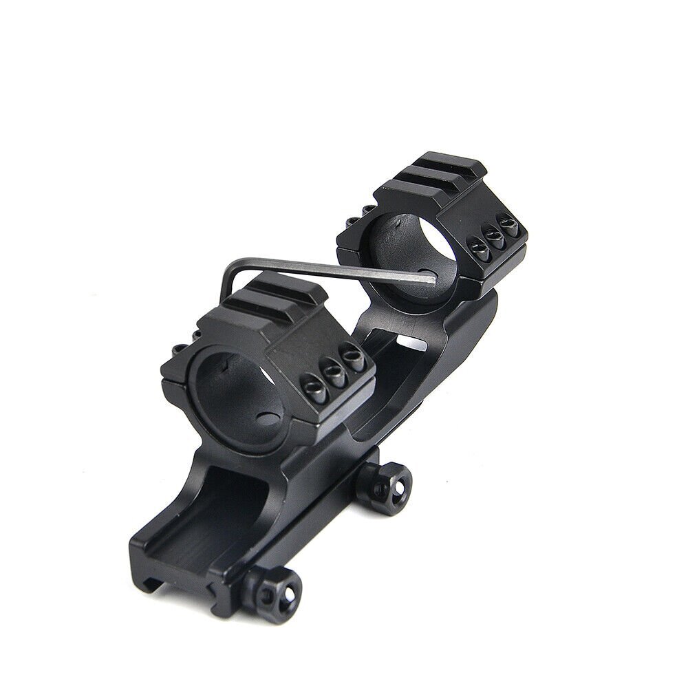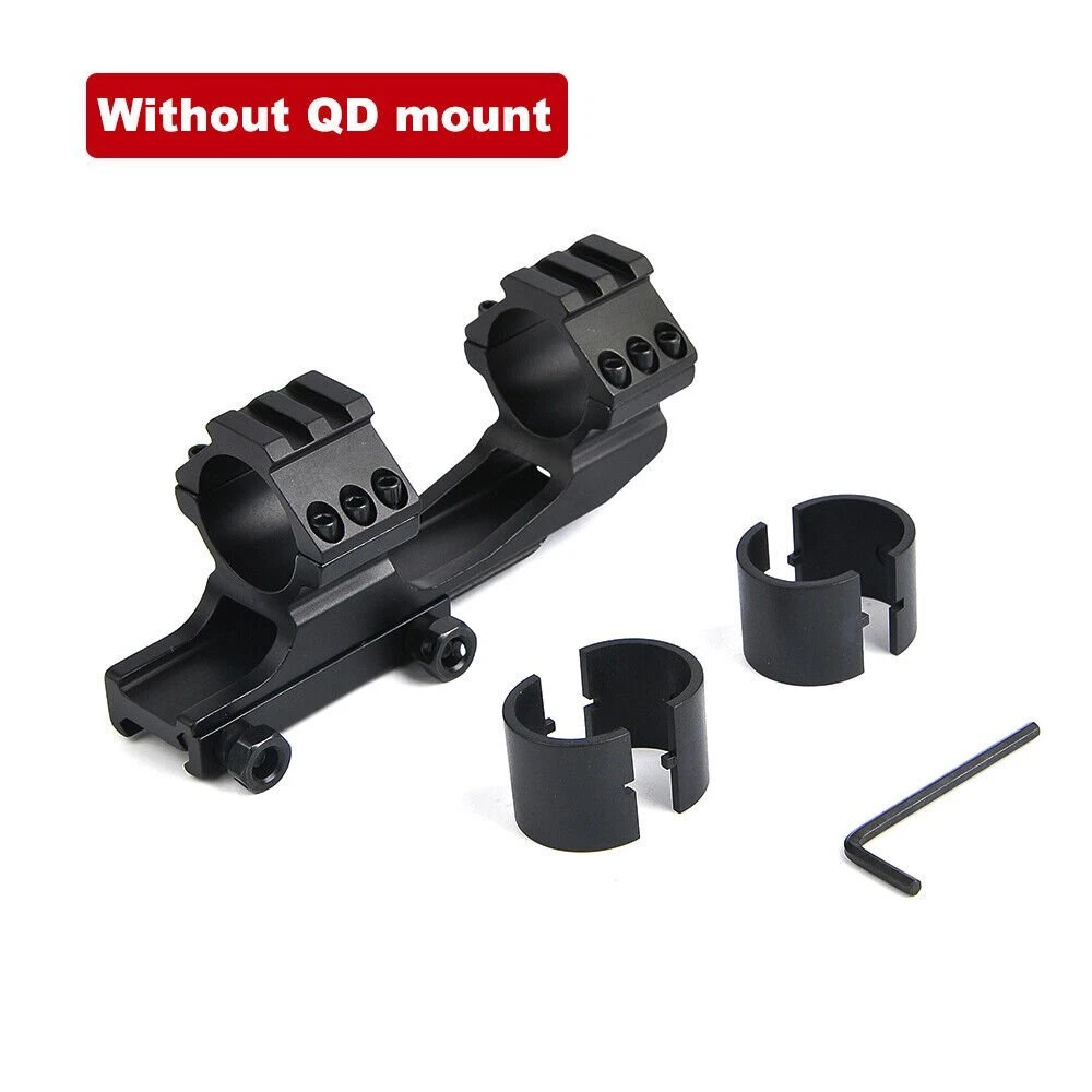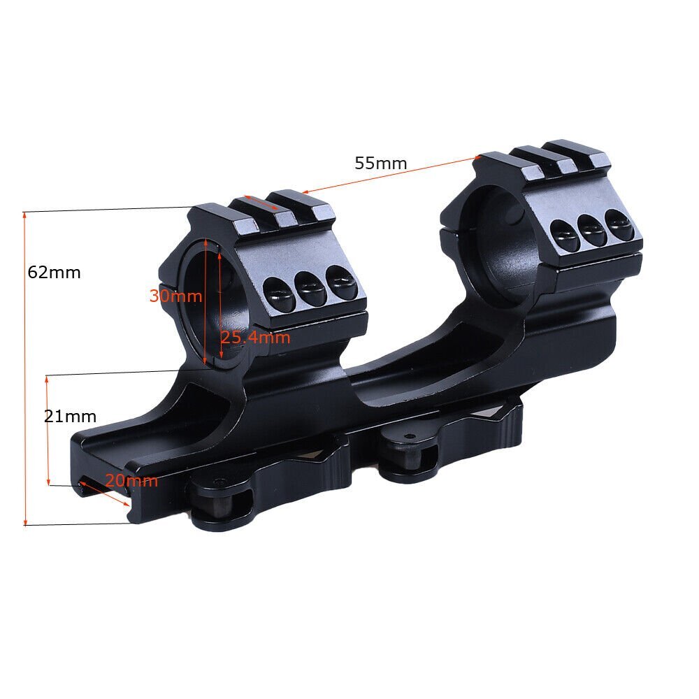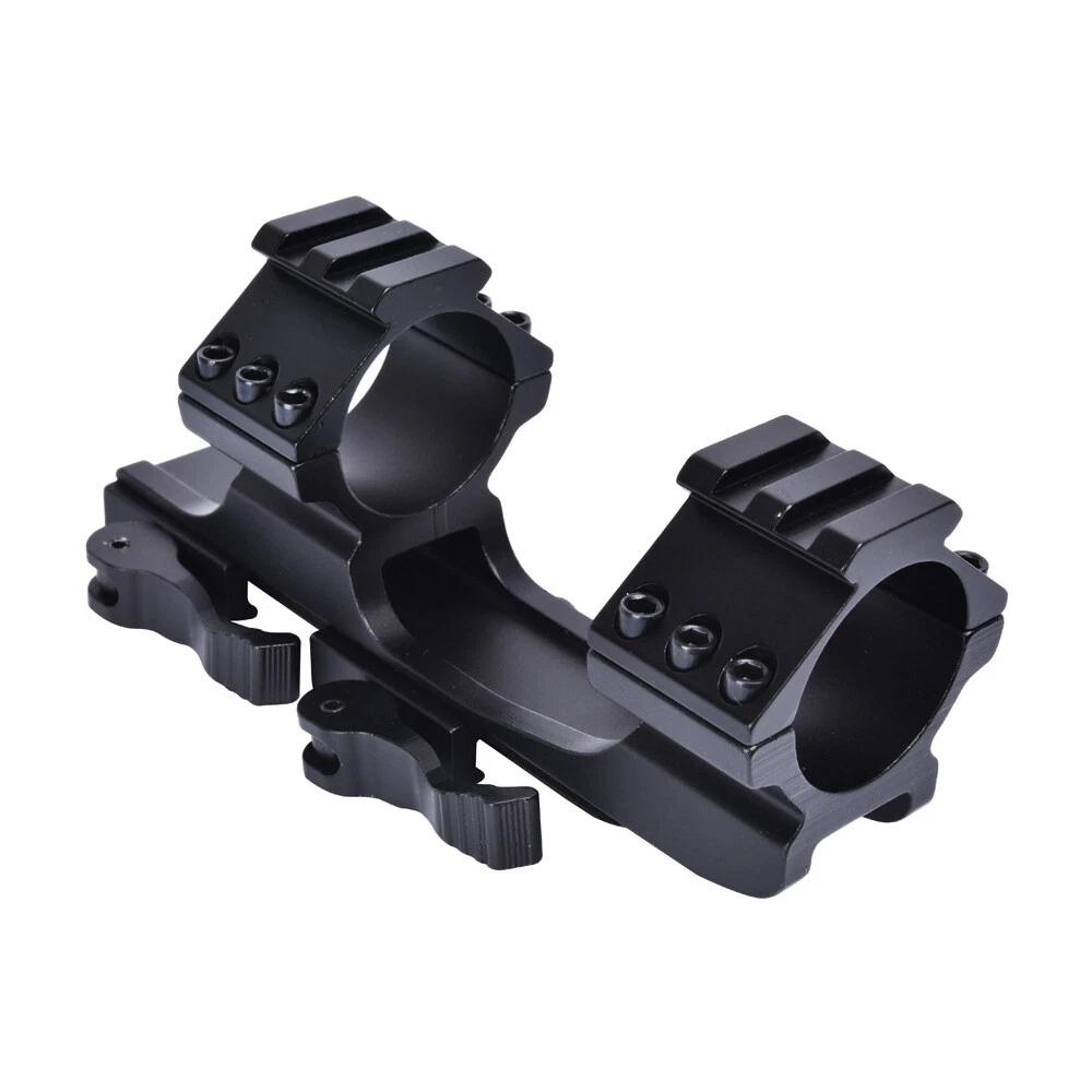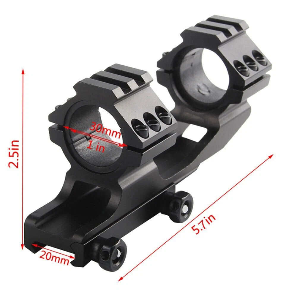 Details: The Black Rifle Tactical Flat Top Heavy Duty 30mm Cantilever Mount is precision CNC machined from high quality billet aircraft grade aluminum. The Black Rifle Tactical Flat Top Heavy Duty 30mm Cantilever Mount is designed with heavy recoil and sustained fire in mind and will hold up in the most extreme circumstances. The Black Rifle Tactical Flat Top Heavy Duty 30mm Cantilever Mount incorporates picatinny rail sections at the ring surfaces to allow for mounting of additional accessories. Features: Ring Diameter: 30mm(without insert)/1 inch(with insert) Fits 20mm tubed scopes FIT FOR Picatinny rail Scope which wide 20mm Durable aircraft grade aluminum construction Black Rifle Matte Finish Package Includes: 1 x Quick Release Scope Mount 2 x 25.4mm inserts 1 x Wrench
