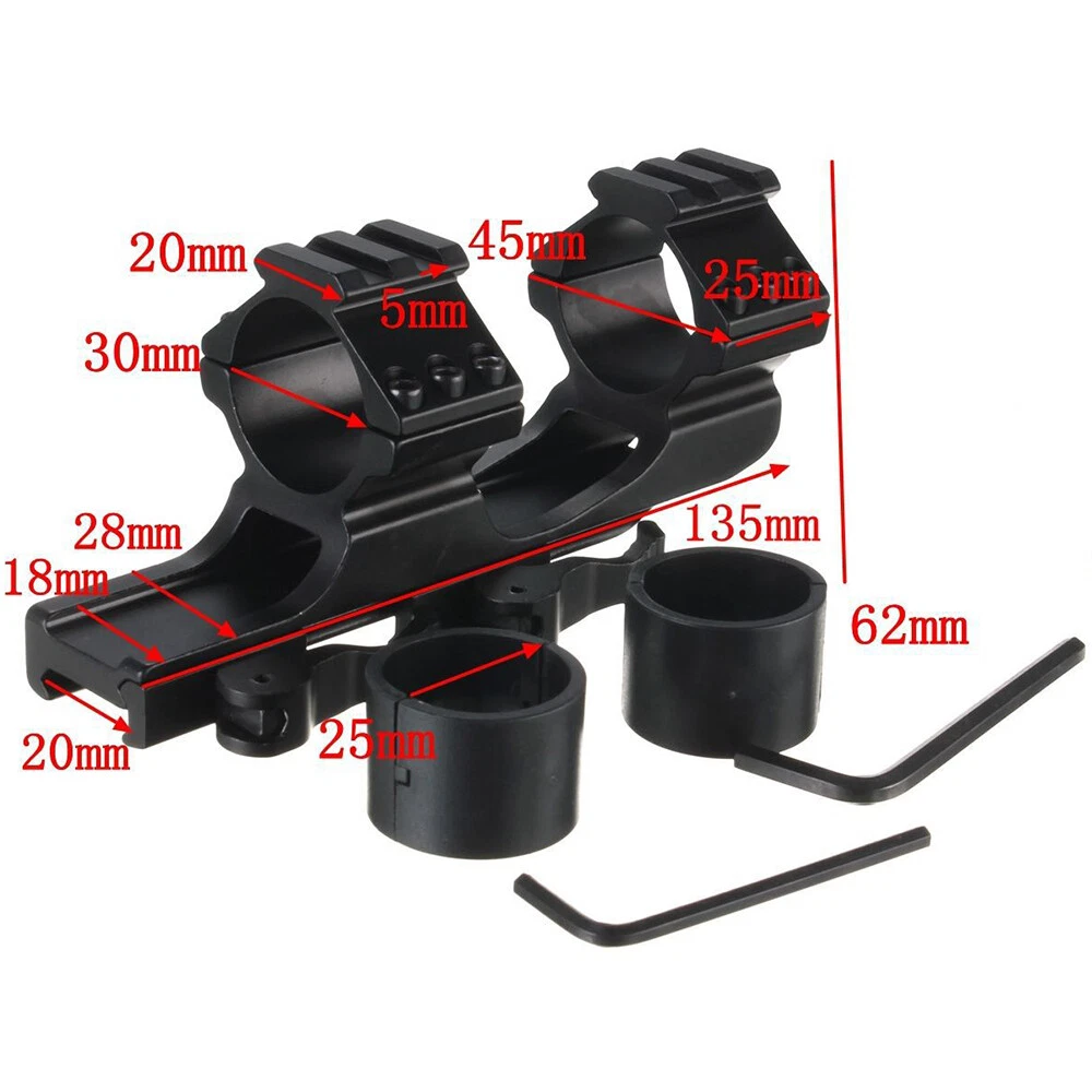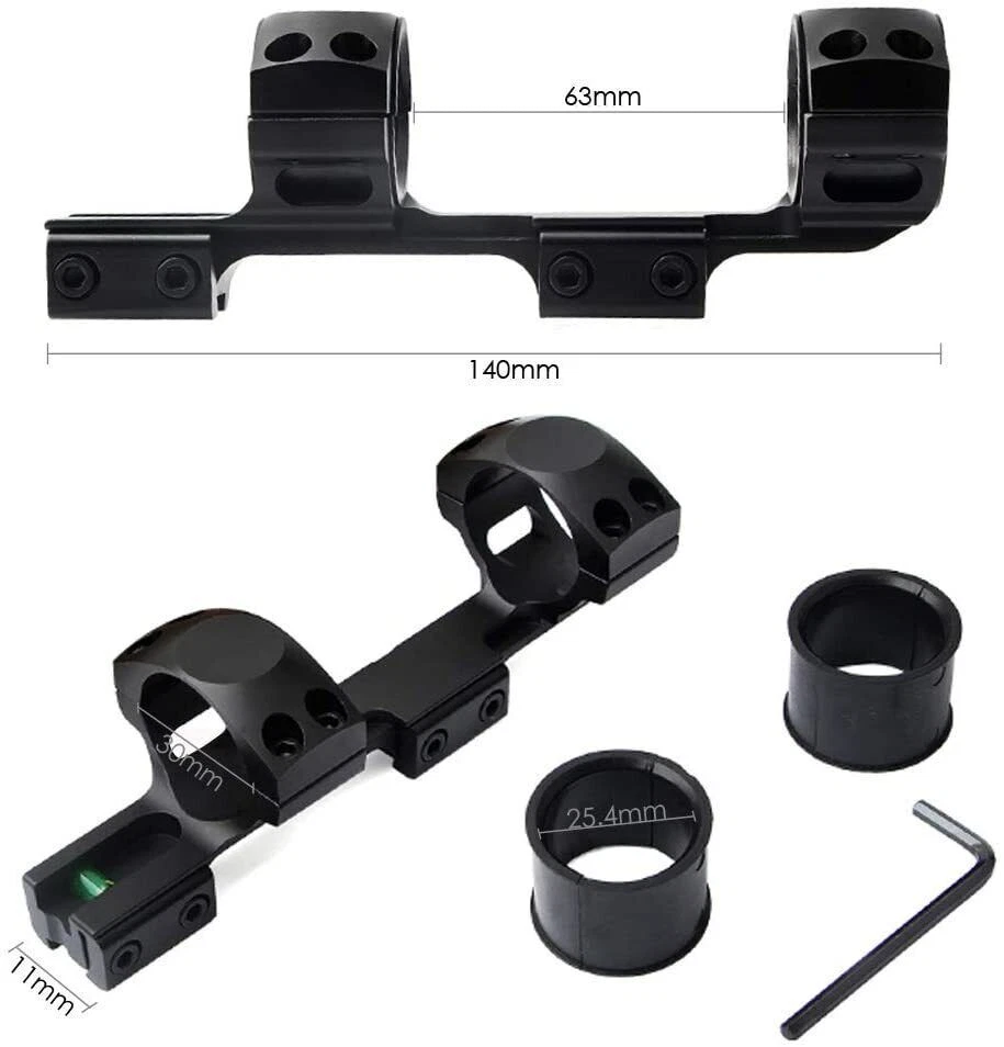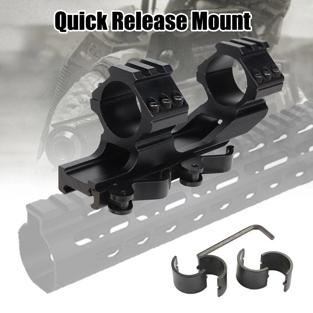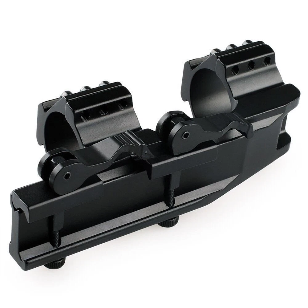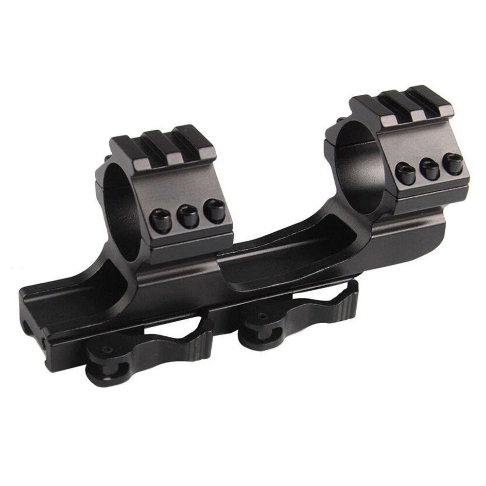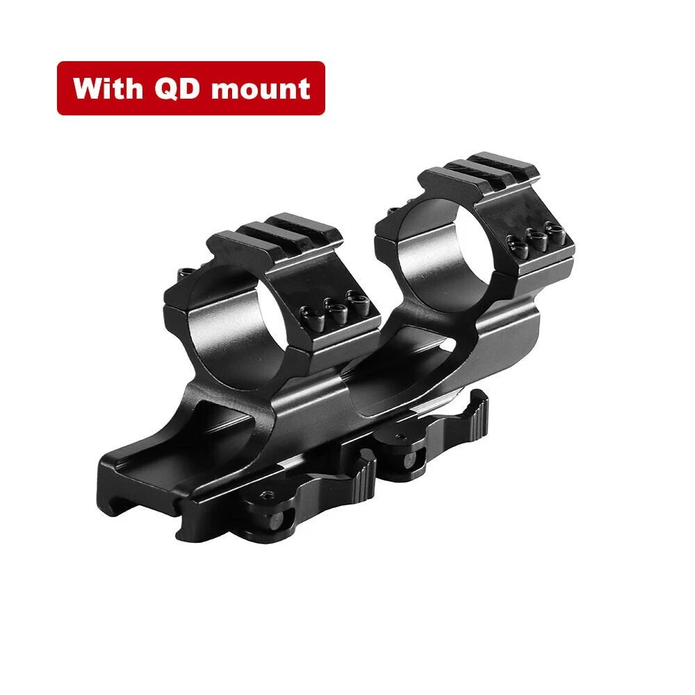 Details: The Black Rifle Tactical Flat Top Heavy Duty 30mm Cantilever Mount is precision CNC machined from high quality billet aircraft grade aluminum. The Black Rifle Tactical Flat Top Heavy Duty 30mm Cantilever Mount is designed with heavy recoil and sustained fire in mind and will hold up in the most extreme circumstances. The Black Rifle Tactical Flat Top Heavy Duty 30mm Cantilever Mount incorporates picatinny rail sections at the ring surfaces to allow for mounting of additional accessories. Features: Ring Diameter: 30mm(without insert)/1 inch(with insert) Fits 20mm tubed scopes FIT FOR Picatinny rail Scope which wide 20mm Durable aircraft grade aluminum construction Black Rifle Matte Finish Package Includes: 1 x Quick Release Scope Mount 2 x 25.4mm inserts 1 x Wrench
