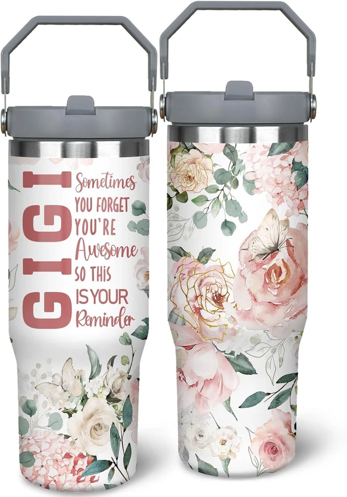 ��Excellent Thermal Performance��Our 30 oz grandma tumbler with handle is made from premium 18/8 food grade stainless steel and design with a vacuum double wall .With its excellent heat retention properties our cup with handle can keep drinks cold for 16 hours and hot for 8 hours which allows you to enjoy your drinks anytime on the go. ��Foldable Straw Sipper��Our nana tumbler and grandma cup with handle designs with a unique flip-up straw, combined with the screw-in lid, it can achieve 100% leak-proof effect. Drinks will not spill or leak. The straw can be opened or closed at will, without worrying about getting dirty due to exposure to the air. ��Flowers and Letter Print Design for Nana��Compared with other solid color tumblers. Our grandma/grammy/nana/mimi/gigi cups are printed with flowers and different letters to address your grandmother. It won''t fade over time, making it the perfect accessory and decoration for grandma''s home. ��Practical and Portable Design��Our 30oz insulated mimi travel mug has an ergonomically designed handle and a suitable capacity, which is convenient to carry, allowing your grammy to enjoy her favorite drink at any time. She can use it at home, traveling, camping, driving and other occasions. Grandmas will definitely love this cup. In addition, the shape of the cup fits most vehicle cup holders. [Birthday and Christmas Gifts for Nana]: Our Gigi thermos is not only practical, but also stylish. It must be great gift for grandma from grandson and granddaughter. This grammy mug is also a great gift for grandma''s birthday, Thanksgiving day, Christmas, Mother''s Day!