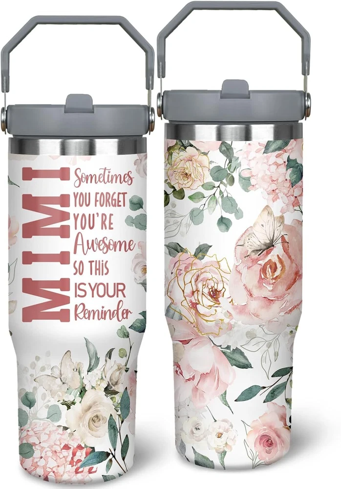 ��Excellent Thermal Performance��Our 30 oz grandma tumbler with handle is made from premium 18/8 food grade stainless steel and design with a vacuum double wall .With its excellent heat retention properties our cup with handle can keep drinks cold for 16 hours and hot for 8 hours which allows you to enjoy your drinks anytime on the go. ��Foldable Straw Sipper��Our nana tumbler and grandma cup with handle designs with a unique flip-up straw, combined with the screw-in lid, it can achieve 100% leak-proof effect. Drinks will not spill or leak. The straw can be opened or closed at will, without worrying about getting dirty due to exposure to the air. ��Flowers and Letter Print Design for Nana��Compared with other solid color tumblers. Our grandma/grammy/nana/mimi/gigi cups are printed with flowers and different letters to address your grandmother. It won''t fade over time, making it the perfect accessory and decoration for grandma''s home. ��Practical and Portable Design��Our 30oz insulated mimi travel mug has an ergonomically designed handle and a suitable capacity, which is convenient to carry, allowing your grammy to enjoy her favorite drink at any time. She can use it at home, traveling, camping, driving and other occasions. Grandmas will definitely love this cup. In addition, the shape of the cup fits most vehicle cup holders. [Birthday and Christmas Gifts for Nana]: Our Gigi thermos is not only practical, but also stylish. It must be great gift for grandma from grandson and granddaughter. This grammy mug is also a great gift for grandma''s birthday, Thanksgiving day, Christmas, Mother''s Day!