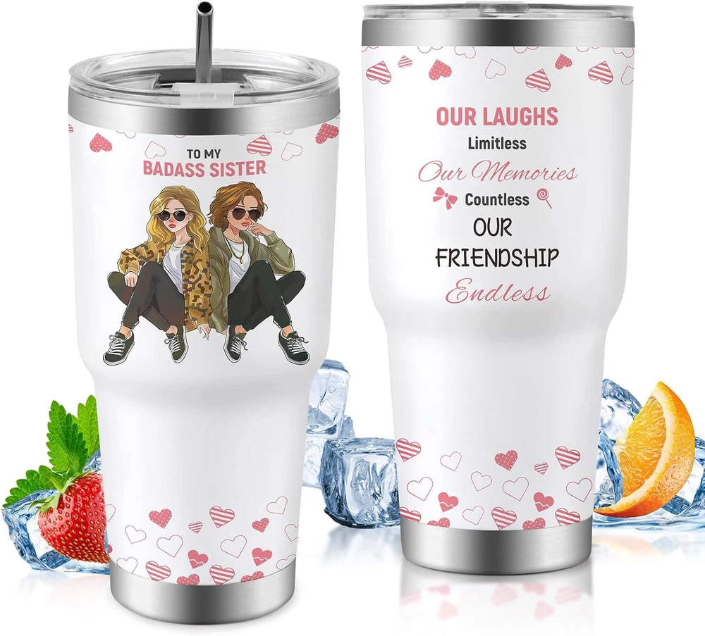 30oz Leakproof Tumbler with Stainless Steel Straw Lid - Perfect Travel Gift for Sister