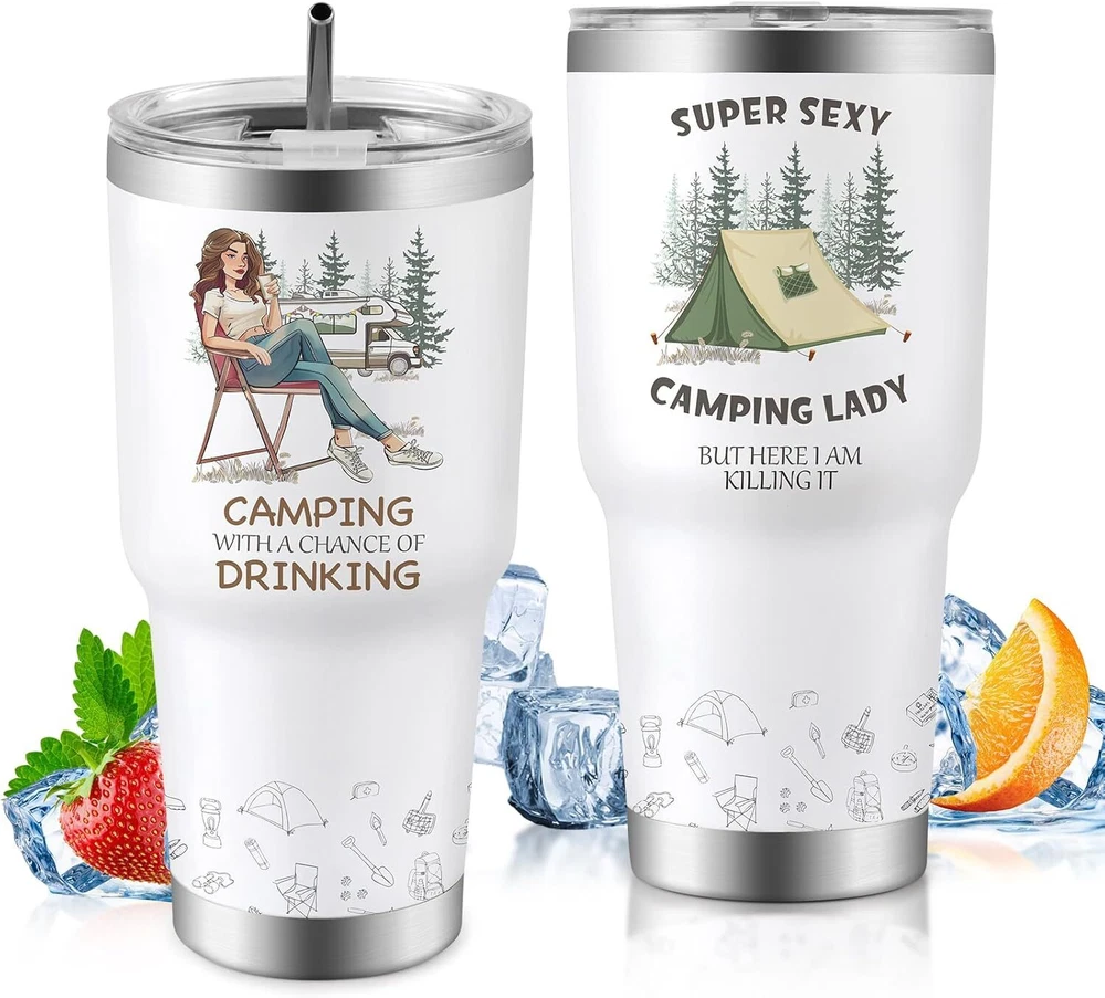 30oz Stainless Steel Tumbler with Straw – Perfect Travel Camping Iced Coffee Cup for Women
