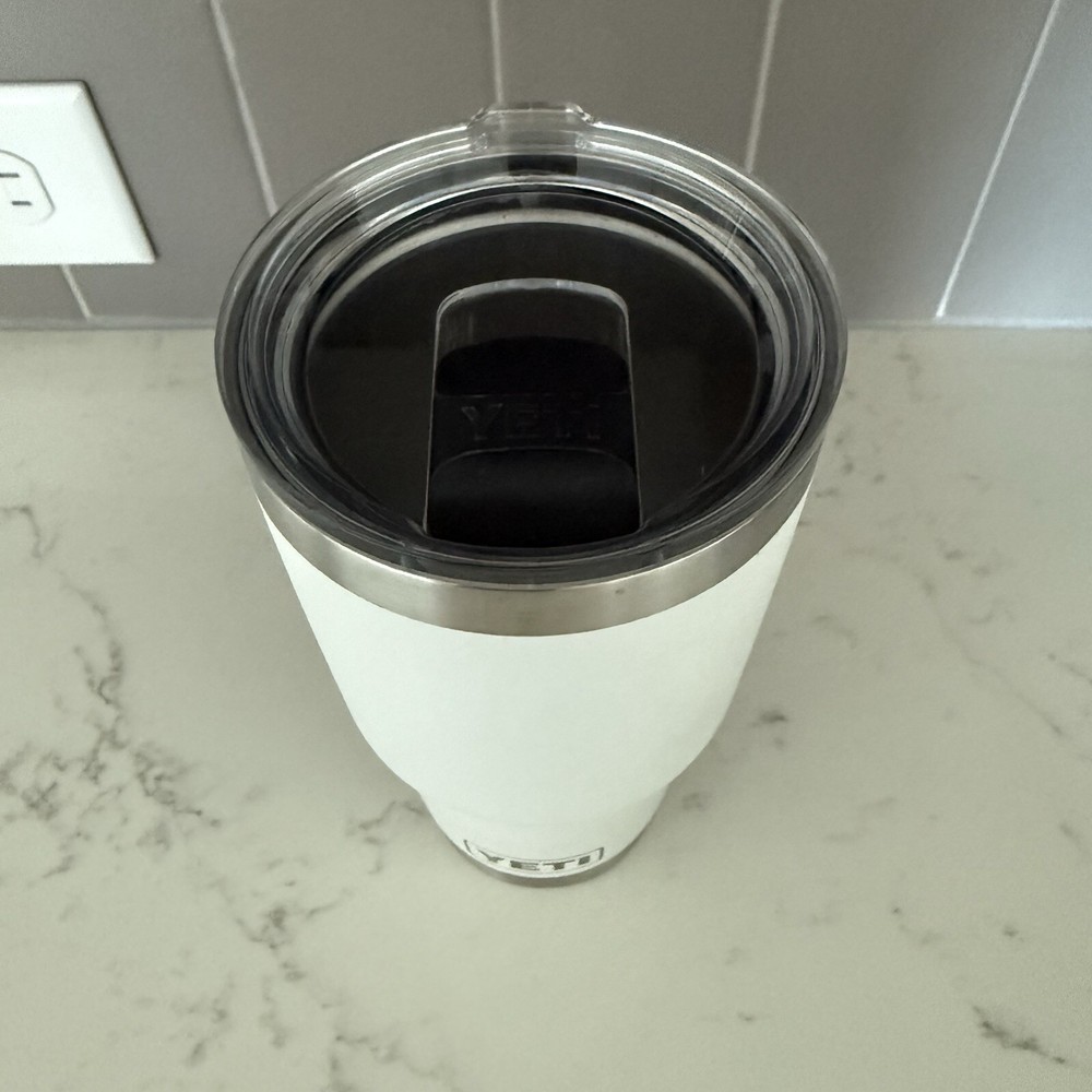 This 30 ounce Yeti Rambler Cup Tumbler is the perfect addition to your daily routine. Made of high-quality stainless steel, it can keep your hot beverages hot for 12 hours and your cold beverages cold for 24 hours. The solid white color and sleek design make it a stylish choice for any home or office setting. It also comes with a lid to keep your drink safe and secure. Whether you're on the go or just need a quick caffeine fix, this tumbler is the perfect choice for you.