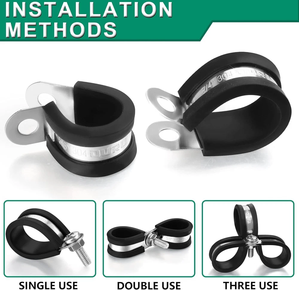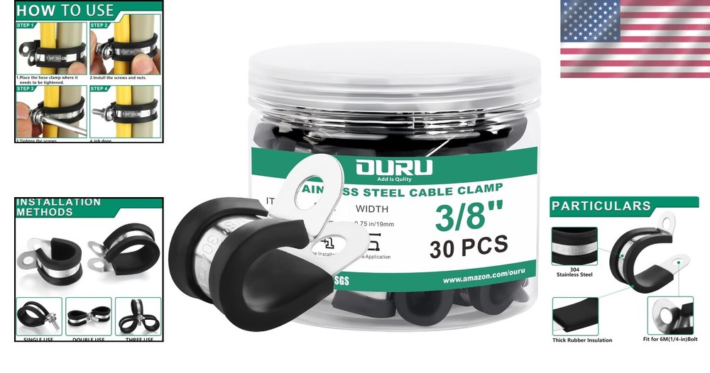 30pcs 3/8 Inch Stainless Steel Insulated Cable Clamps - Durable & Secure Setup ‹ › ‹ › ‹ › ‹ › ‹ › ‹ › ‹ › ‹ › 30pcs 3/8 Inch Stainless Steel Insulated Cable Clamps Durable & Secure Setup Product Details: Includes: 30pcs of P-Clamps Fits for screw bolts up to 6M (1/4 inch) for secure installation Made of 304 high-quality stainless steel with rubber-coated cushioning for enhanced durability Features: Exceptional resistance to abrasion, moisture, rust, cold, and heat—ideal for harsh environments. Strong construction ensures the clamps will not rust or break. Rubber insulation protects wires and pipes from damage caused by shocks or vibrations. Easy to install with a unique R-shaped design for flexible control. Comes in a handy storage box for easy carrying and organization. Why Choose Our Insulated Cable Clamps? This 30pcs Stainless Steel Insulated Cable Clamps Kit is designed for both indoor and outdoor applications, making it the ultimate choice for demanding environments. With a robust build that withstands wear and tear, these clamps ensure secure wire management and line repair wherever you need them. Whether you're working in automotive, industry, marine settings, or engaging in DIY home decoration projects, these clamps offer unparalleled performance and reliability. Choose peace of mind and effectiveness with insulation that safeguards your installations and maintains integrity. Make the smart choice for your wiring and piping solutions - invest in our Stainless Steel Clamps today! Shipping Free & Fast Shipping - We offer free shipping to most of the USA with a normal delivery time of 3-7 days. However, due to the current situation, additional delivery time (up to 3 weeks) may be required for some items. Alternative Carriers - We may use alternative carriers (e.g. USPS, FedEx, UPS, etc.) to ensure your package arrives safely and on time. Due to the use of multiple carriers, we are unable to provide a tracking number automatically. Handling Time - Orders are processed and shipped within 1-2 business days of receiving cleared payment. Shipping Restrictions - Shipping to Alaska, Hawaii, Puerto Rico, Guam, and other US territories may incur shipping charges or delivery restrictions. Please contact us before ordering, or your order can be refunded/cancelled. State Restrictions - There may be restrictions based on your state of purchase. For example, certain items may not be shipped to California due to state regulations. Contact for Tracking Updates - If you require tracking updates or have any concerns about the delivery of your order, please feel free to contact us, and we will be happy to assist you. Return 30-Day Hassle-Free Returns - We want you to be completely satisfied with your purchase. If you are not, you can return the item within 30 days of receiving it for a full refund or exchange. Easy Return Process - To start a return, simply contact us and we will provide you with a prepaid return shipping label and detailed instructions. Restocking Fee - There are no restocking fees for returns. However, the buyer is responsible for return shipping costs if the return is not due to a seller's error. Refund Processing Time - Refunds will be processed within 5 business days of receiving the returned item in its condition. Payment We accept all major credit cards, PayPal, and Apple Pay for your convenience. Your payment information is secure and encrypted to ensure a safe and seamless transaction. Please complete your payment within 3 days of purchase to avoid any delays in shipping. Feedback Your feedback is extremely important to us. We strive to provide the best products and customer service possible. If you are satisfied with your purchase, please take a moment to leave us a positive review. If you have any concerns or issues with your order, please contact us before leaving negative feedback. We are committed to resolving any problems and ensuring your satisfaction. Contact Us If you have any questions or concerns, please feel free to out to our customer support team. You can contact us through the eBay messaging system. We are available Monday to Friday, 9:00 am to 5:00 pm EST, and we will do our best to respond to your inquiry within 24 hours. Buy it now and enjoy a pleasant shopping experience! Model: Stainless Steel Cable Clamps Unit Quantity: 30 pcs Material: Rubber,Stainless Steel,304 Stainless Steel Rail Height: Stainless Steel Cable Clamps Item Length: 8 in Item Diameter: 3/8 in End Type: Closed Type: Cable Clamps Grade: Not Specified Screw Size: 1/4 in Shape: Round System of Measurement: Inch Number in Pack: 30 Unit Type: oz