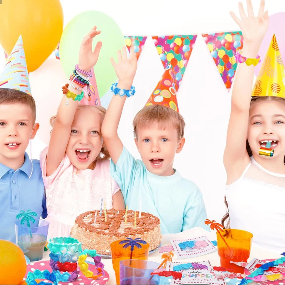 💝【valentines goodie bags filler】30 pop bracelets party favors for kids (10 designs) , 30 valentines cards (3 designs) 💝【Unique pop bracelet design】Our pop fidget bracelet are made of high-quality silicone, eco-friendly. And each valentine card has a special punchline and size which matches the heart pop bracelet.durability and washable, comfortable to play with in the hand. 💝【Perfect Gift】Great for Valentines Day Gifts for Kids, birthday party favors for kids 4-8, gift bag fillers, class gift exchanges, classroom prizes, Christmas stocking fillers.Easter Basket Stuffers. 💝【Relieve Stress and Anxiety】The pop bubble fidget toy is an effective home essential for people with autism and stress, helping them relieve stress from anxiety and restore emotions. 💝【Easy to Use】The Fidget Push Pop Bubble Toy , played with by squeezing the bubbles, and is reusable. It is the most popular stress reliever toy today. The stress relieving toy is small and lightweight, making it easy for you to carry around. The length can be adjusted and is suitable for most children. 💝【perfect after-sales service】: We aim for 100% CUSTOMER SATISFACTION GUARANTEE. If you are not satisfied with our product we will refund 100% of your purchase.