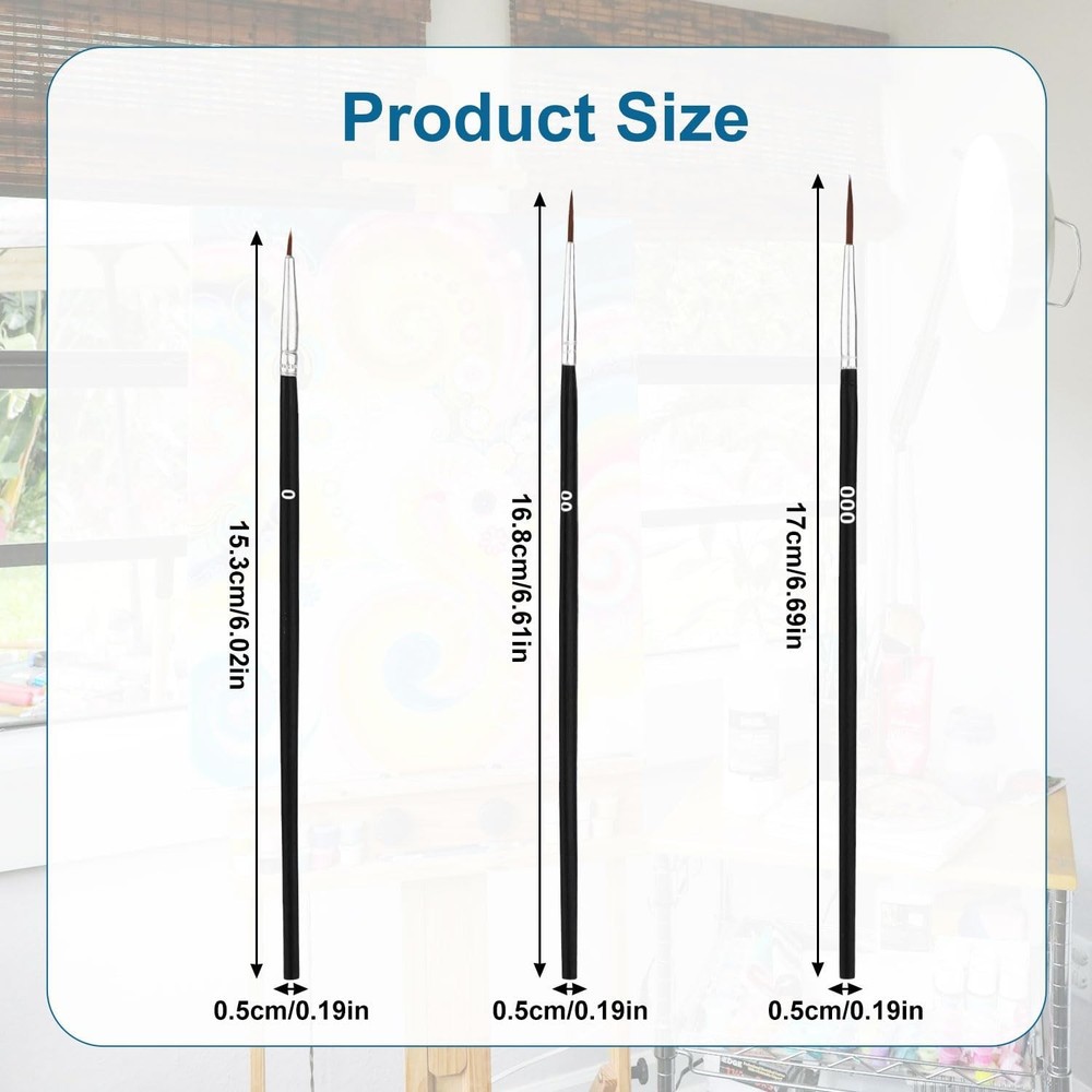30pcs Detail Paint Brushes, Fine Tip 15.3x0.5cm/6.02x0.19in, Black Product Details Color: Black Material: Synthetic nylon bristles Size: 15.3x0.5cm/6.02x0.19in Brand: PEUTIER Paint Type: Watercolor, Acrylic Brush Width: 0.5 Centimeters Bristle Type: Synthetic Manufacturer: PEUTIER Item Weight: 50 Grams Package Dimensions: 6.57 x 2.8 x 0.63 inches Item Weight: 1.76 ounces Country of Origin: China Item model number: 05036 Product Content: You will receive 30 pieces of detail paint brushes with 3 models, including 0/00/000. Sufficient quantity and assorted models can meet your various painting needs and replacements. Product Size: The #0 detail paint brush measures about 15.3x0.5cm/6.02x0.19in, the #00 measures about 16.8x0.5cm/6.61x0.19in, and the #000 is about 17x0.5cm/6.69x0.19in. You can choose the models according to your needs. Premium Material: Our fine tip paint brush is made of quality synthetic nylon bristles, soft and resilient, not easy to fall off or break. The stainless steel brush head is firmly connected to the pen handle and will not fall off easily. You can use with confidence. Easy to Clean: Even after multiple washing and using, the miniature paint brushes can keep their shape well. Just wash the paint brushes in water and use your fingers to reshape the bristles gently. The clear plastic brush tubes also give good protection for the bristles. Wide Application: The fine detail paint brushes are suitable for any detail painting, such as scale model painting, nail art, face painting, modeling painting, sculpture painting, miniature painting, amateur crafts making, etc. Specification: Color: black Material: synthetic nylon bristles Product Size: #0: 15.3x0.5cm/6.02x0.19in, #00: 16.8x0.5cm/6.61x0.19in, #000: 17x0.5cm/6.69x0.19in Package details: 30 x fine tip paint brush Note: Due to manual measurement, the size and weight may have a certain error. Due to the difference between different monitors, there may be a slight color difference existed.