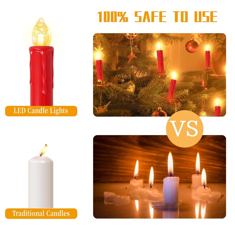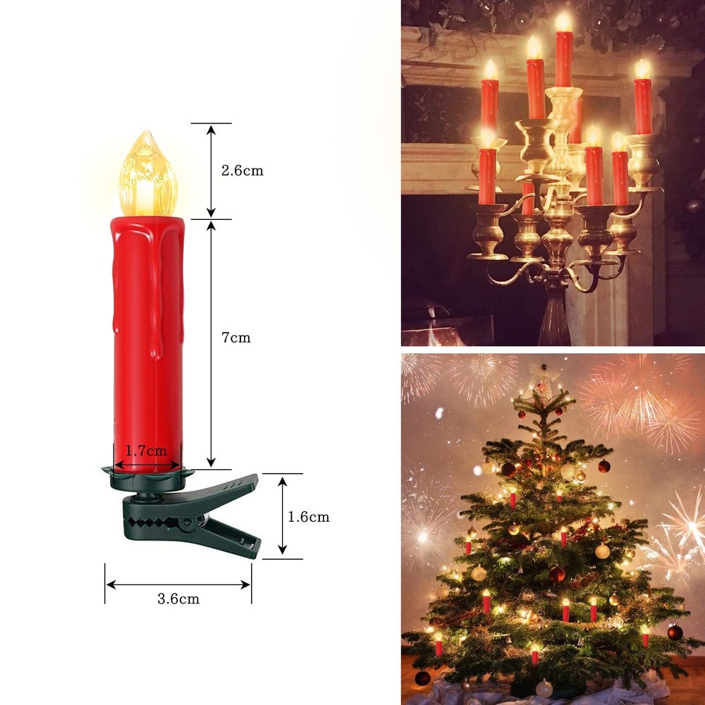 Sunjas 30PC LED Flameless Taper Battery-Operated Christmas Tree Candles with Remote, Timer, Dimmer, Warm White Light, Window Lights Perfect decor and multiple uses: These LED flameless taper candles come with a detachable clip that provides convenience for the decoration you need for various events and ceremonies. Romantic lighting allows them to be widely used for Christmas, weddings, parties, Thanksgiving and any time. You can easily clip them to your Christmas tree, put them on a candlestick, or whatever you want to add Realistic candle effect: These christmas tree candles measure 0.7"D x 0.7"W x 4"H. When the flame of romance flickers in a transparent shell, it feels and looks like a real window taper candles flame. They can create a warm and romantic atmosphere and can be used as home decoration for dinners, parties, weddings, birthdays, Christmas Safe and long-lasting battery operated: Unlike traditional window candles, flameless candles are battery operated, so there is no need to worry about candle dripping wax, candle smoke, and potential fires, providing you with a safe and romantic environment. Each flameless LED taper candle requires 1 AA battery (not included), which provides more than 150 hours of illumination, eliminating the need to change candles as often, saving you time and enjoying the festive season 3-in-1 remote control: The remote control of led candles is very easy to operate, it is a remote control that integrates remote control, timing, and brightness adjustment. You can control the flameless candle on/off, flashing mode (fast or slow), light brightness (up and down). These battery candles also have a "6H" timer feature that automatically cycles on every 24-hour cycle, which will save you the hassle of opening/closing them as they will automatically reopen at the same time every day Packing: 30*flickering flameless candles (batteries not included), 30*Clip, 1*Remote Control, 1*User Manual. Our flameless candles with remote have been rigorously tested before leaving the factory, and the remote control range can reach 5 meters, so you can buy with confidence. Hi friends, come and make your Christmas tree decoration even more unique! SHIPPING Domestic Buyers - We have confidence in our products, but if you are not fully satisfied please contact us within 30 days of purchase and you will get full refund. - We ship within 3 business days of payment, usually sooner - We offer FREE shipping on all orders! - We only ship to the lower 48 states, no APO/FPO addresses or PO Boxes allowed International buyers – please note: Import duties, taxes, and charges aren't included in the item price or postage cost. These charges are the buyer's responsibility. - Please check with your country's customs office to determine what these additional costs will be prior to bidding or buying. * Order Cancellation Policy ** You can return a product for up to 30 days from the date you purchased it. 1. The seller reserves the right to cancel the special case only due to eBay cancellation fee. 2. The decision of seller is the final. 3. The seller will respond to the cancellation request within 2 business days. Please wait for the result of cancellation. 4. In case the cancellation is not completed by some reasons, the buyer can follow the options below to get the refund. 4.1 The buyer can reject the item when it arrives. 4.2 The buyer can send the item back to the seller within 30 days If the buyer receives item (USA Shipment ONLY). The seller will provide the FREE return label to the buyer when the buyer opens " Return Item" case on eBay by using the reason as "Change my mind" ONLY. 5. When buyer has placed the order. The order will be processed and completed by automatic warehouse system within 5 minutes. In case that buyer sends the cancellation request after 5 minutes of placing the order, the request will be rejected. **Sending direct message to cancel the order is not allowed for every case.* Return Policy For the return case - If buyer would like to return the items for refund or replacement, please CONTACT SELLER to receive the free return label from seller. The refund or replacement will be processed with the tracking number of return label which is provided by seller only. The other ways of return which are not approved by seller will not be processed for the refund or replacement.