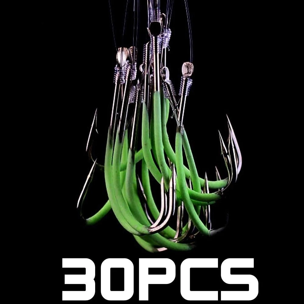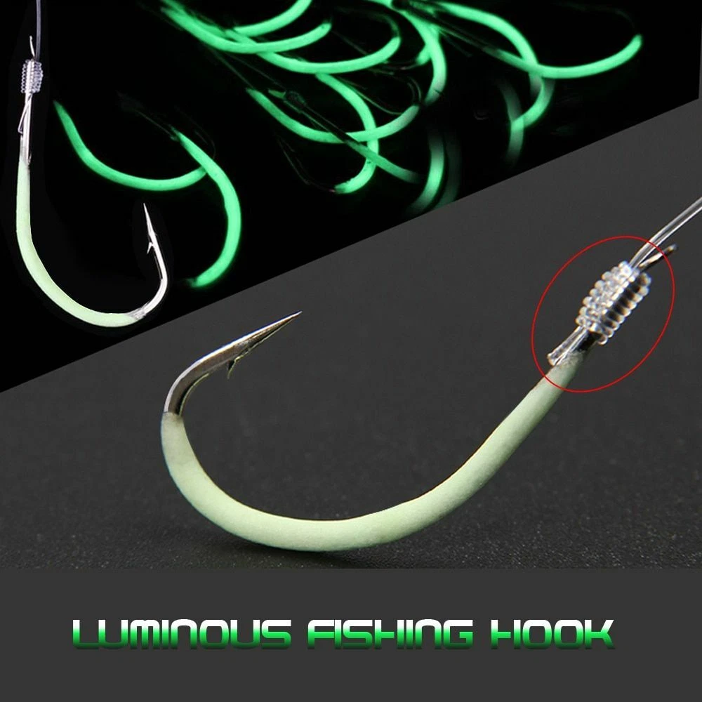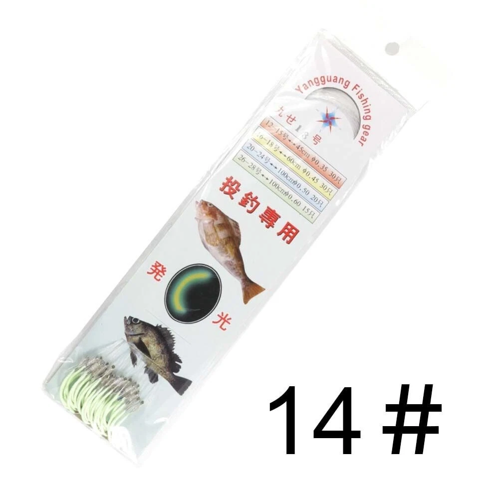 eBay 30pcs/sets Luminous Fishing Hook With Line Features: 100% brand new and high quality. Suitable for a variety of occasions, fishing a variety of fish. Barbed design, fish is not easy to run. Luminous glow attracts fish attention. Reasonable hook design, easy to bait, fish is easier to hook. Specifications: Material: High carbon steel Size: 12#, 13#, 14#, 15#, 16#, 17#, 18# Color: Luminous Quantity: 30 pcs/bag Package Included: 30 x Fishing Hooks *** If you have any questions feel free to contact us. ***