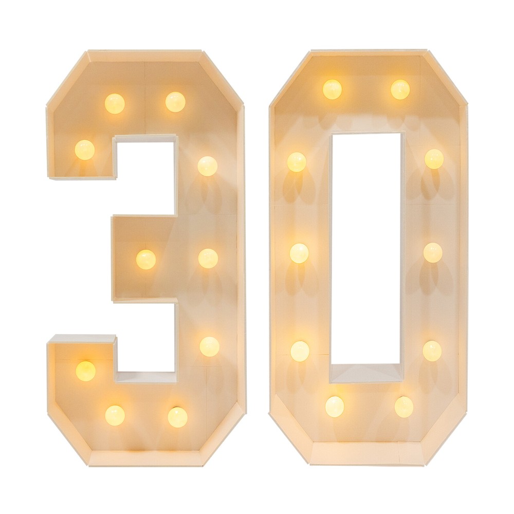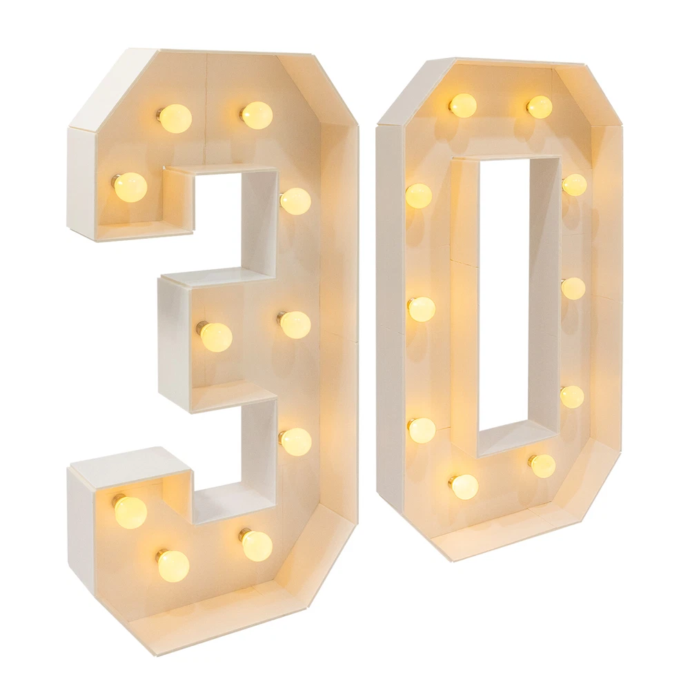 30th Birthday Party Decoration, Light Up Numbers for Birthd, 30 Light Up Numbers Welcome to our store~ Description Eager to add a touch of extraordinary style to your birth celebration? These light-up numbers combine light and numbers to create a favorable atmosphere. It is not only a witness to time, but also an engraver of emotions and memories, tailor-made for your birthday party or anniversary. Use it at your birthday party or anniversary event, it will surely impress your guests and become an unforgettable memory! Details Wide Bottom : The wide bottom makes the force area large, making the overall stability of the product good, and not easy to tip over. Smooth Edges : They not only enhance the aesthetics of the product but also improve safety during installation and use. Application It is suitable for birthday parties, anniversaries, and other celebration activities. Specifications Color: White Material: KT Board Process: Machine Cutting Style: Vintage Indoor/Outdoor Usage: Indoor Assembly Required: Yes Mounting Type: Floor Standing Power Source: Battery Powered EU Energy Label Efficiency Labeling Class: A++to E Efficiency: E Battery Type: 6* AA Batteries(Not Included) Light Source: 20* LED Bulbs(Included) Light Color: Warm Color Temperature: 2000-3000K Product Height: 100cm/39.37in Package Size: 41*25*19cm/16.14*9.84*7.48in Gross Weight: 1.25kg/2.76lbs Net Weight: 1.1kg/2.43lbs Payment Delivery details Terms of sales About us Contact us Payment We accept ebay payment 。 Fees such as import duties, taxes are not included in the item price or shipping costs. These charges are the buyer's responsibility. Delivery details Shipping: 2-9 working days to: USA Terms of sales We maintain high standards of excellence and strive for hundred percent customer satisfaction. Feedback is very important to us. We hope that you contact us immediately before you give neutral or negative feedback, so that we can address your concerns. It is impossible to address issues if we do not know about them! About us Your satis faction is our ultimate goal. We work hard to earn your trust and future business. Our certified technicians have tested each item before shipping. The unit comes with 1 year limited warranty on all manufacturing defects. a) If you receive a defective item, you may return it or ask for a discount. Please contact us within 14 days after you receive the package. b) What you returned must be intact and in its original packaging as re? u. Customer is responsible for shipping costs of the returned item. c) We will cover the cost of shipping back t with the shipping rate indicated in the registration page. We will send you a new unit or refund the full payment you paid. Thank you. Contact us Business Hour Business Hour: Monday To Friday: 8:30 AM to 5:00 PM (Beijing China time) Due to time zones, our reply to your questions may not be immediately. But within above working time, we will reply your email within 24 hours. If it's non-workdays, please kindly be patient and wait till Monday. Please contact us with ebay message. Please feel free to contact us if you have any questions. Monday To Friday: 8:30 AM to 5:00 PM (Beijing China time) Due to time zones, our reply to your questions may not be immediately. But within above working time, we will reply your email within 24 hours. If it's non-workdays, please kindly be patient and wait till Monday. Please contact us with ebay message. Please feel free to contact us if you have any questions. Highlight Compact Design,Unique Appearance, High Reliability Brand Unbranded Type Party Decoration Color White Material KT Board EU Energy Label Efficiency Labeling Class A++to E Battery Type 6* AA Batteries(Not Included) Light Source 20* LED Bulbs(Included) Color Temperature 2000-3000K