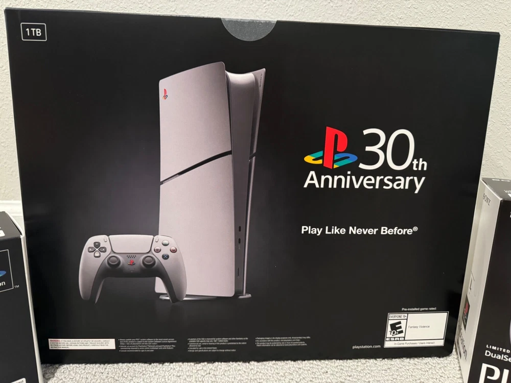 Celebrate three decades of gaming excellence with the limited-edition 30th Anniversary PlayStation 5 Slim. This home console comes in a sleek gray color, offering a stylish update to the classic design that has been the hallmark of Sony's gaming line. The PS5 Slim is compatible with the NTSC-U/C (US/Canada) region, ensuring seamless gameplay for North American audiences.Included with the console are the innovative Edge Controller, perfect for precise control during intense gaming sessions, and the PlayStation Portal, expanding your gaming universe with access to a vast library of titles. This bundle is an essential addition to any gamer's collection, bringing the future of gaming into your home with Sony's trusted quality and cutting-edge technology.