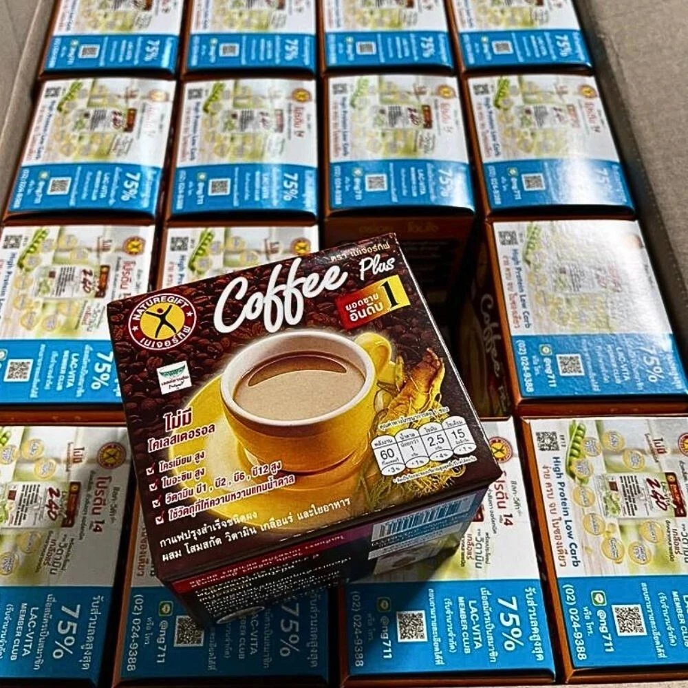 Nature Gift COFFEE PLUS Weight Control Diet Instant coffee powder mixed with ginseng extract, vitamins, minerals and dietary fiber. Sugar-free formula Condition : 100% new, never opened Net Weight : 135 grams / 1 Box Size : 13.5g. per Sachet / 10 sachets per box Quantity : 30 Boxes. ( 300 sachets) Fragrant, delicious Low fat No cholesterol Use sweeteners instead of sugar Benefits of vitamins and some minerals in Nature Gift productsInstant coffee, powder type, mixed with ginseng extract, vitamins, minerals and dietary fiber Properties Good health is the foundation of our happiness. To be healthy , you must be in a place with clean air, drink clean water, and eat a complete diet of 5 food groups in the right proportions. However, due to the food production process and the current lifestyle, people's bodies lack dietary fiber, vitamins, and minerals that are necessary for the functioning of cells and organs. When organs cannot function efficiently, health will deteriorate leading to various diseases such as stress, constipation, diabetes, and obesity etc. This Nature Gift product combines the value of ginseng extract, dietary fiber with vitamins, minerals, and a special formula from Nature Gift that will help you take care of your figure and health easily by taking it after every meal just one sachet per meal.