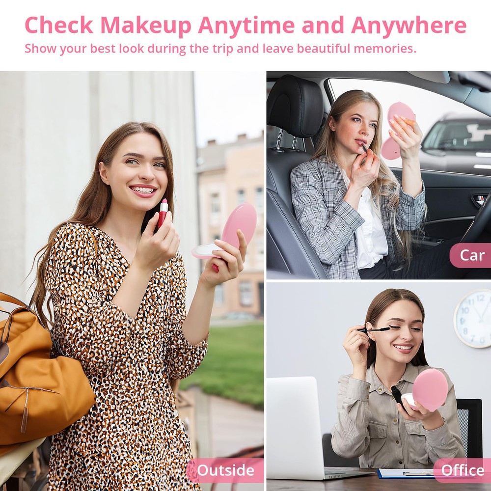 This travel mirror is a game-changer! The perfect size for any bag—whether you're traveling, camping, or just on the go. The dual magnification (1x/30x) and LED lights make touch-ups effortless, ensuring flawless makeup anywhere. It's stylish, compact, and super practical—a must-have for confident, gorgeous looks anytime. Great gift too! Love how convenient and well-designed it is.