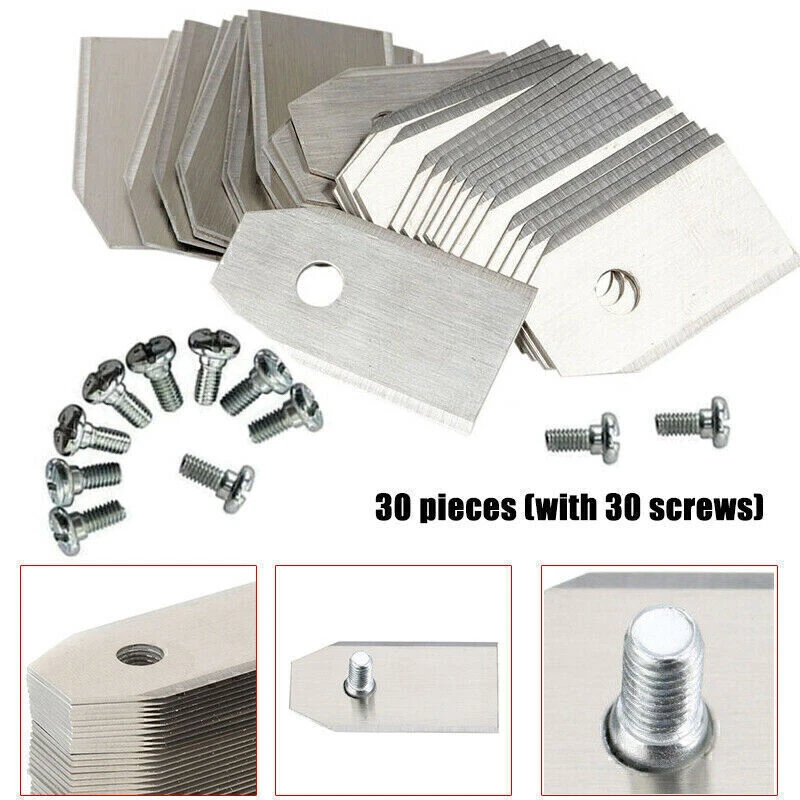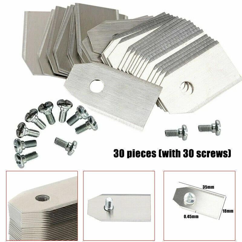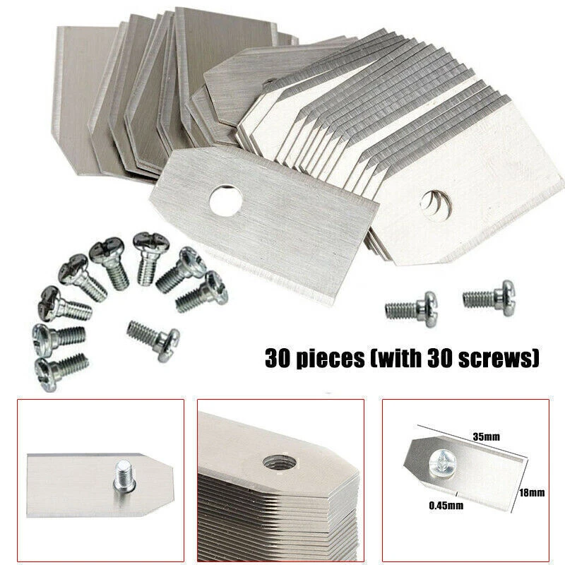 SAFE & SECURE SHOPPING 100% SATISFACTION GUARANTEED FAST SHIPPING 30x Replacement Blade For Husqvarna Automower/Gardena Robotic Lawnmower Best Product Description If you have any questions, please contact customer service first, do not open disputes easily, thank you! Specification: Brand new Material: Stainless steel Color: Silver Size: approx. 35*18*0.45mm Screw: 4mm High strength and hardness. Convenient to use. Durable in use. Fit for Husqvarna Automower. Package included: 30pcs x Lawnmower Cutter Piece 30pcs x Screws Note: Please allow 1-3mm errors due to manual measurement. Item color displayed in photos may be showing slightly different on your computer monitor since monitors are not calibrated same. About Us About Us We accept all payments authorized by eBay. Copyright © 2022 Tongtool