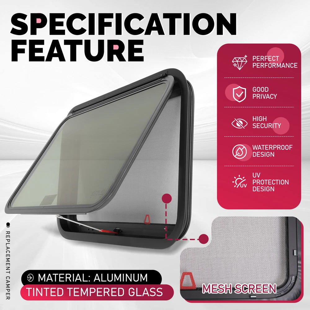 30"x20" For RV Camper Window Emergency Push Out Tinted Glass w/Trim & Screen FIT FOR: For RV (Universal RV Parts) Specification : Condition: 100% Brand New Color: Frame Color: Black Glass Color: Dark Mesh Screen: Black Material: Aluminium+Tempered Glass+Plastic+Rubber Surface Finish: Powder Coated Mounting hardware Included: Yes Features: Blocks some UV rays to prevent bugs from flying into your RV while maintaining a clear view. Made of tempered glass to resist impact. Edge-sealed design prevents moisture penetration and cracking. Package Includes : 1 X Window w/ Mounting Hardware Shipping: All items will be shipped out in 1 business day, no expedited service available. We ship our items to USA only(Does NOT include Hawaii, Alaska or Puerto Rico, PO Boxes/APO's). Shipping Notes: We use multiple warehouses and will select the nearest warehouse for delivery according to your order address and our inventory, Thank you for your cooperation. Contact us: Any Questions, Just feel free to contact us on eBay. We will reply you in 24 hours. On May 29, 2025 at 02:33:13 PDT, seller added the following information: On May 29, 2025 at 18:56:00 PDT, seller added the following information: