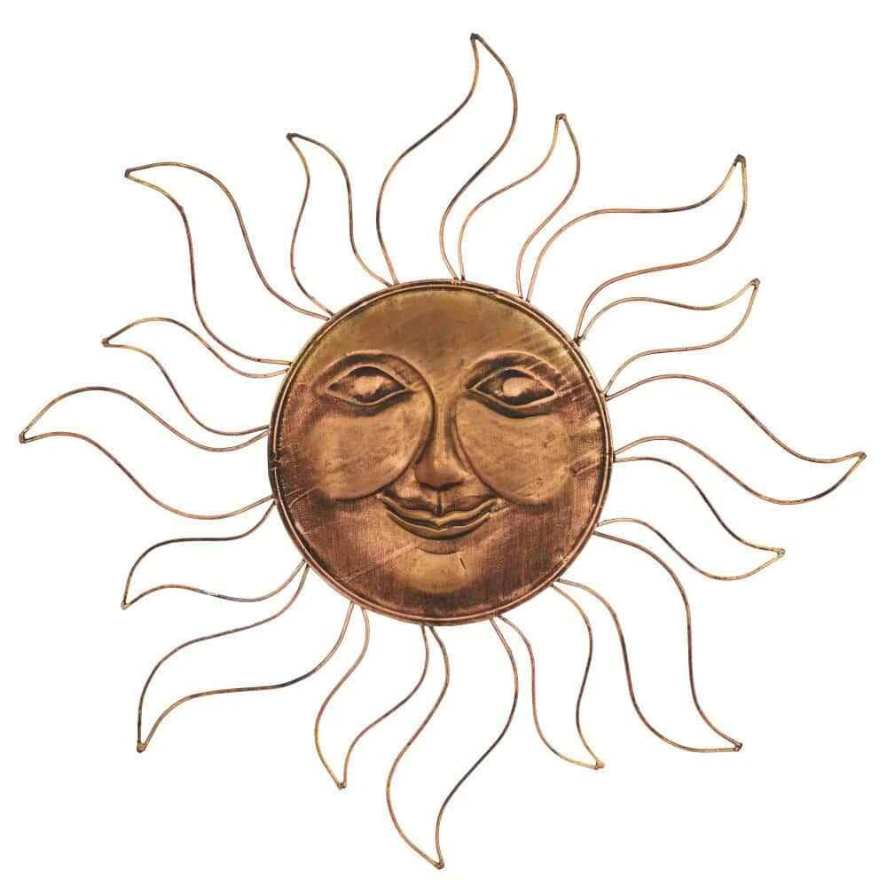 Store New Arrivals Add to Favorite View Feedback Contact 30 in. x 30 in. Metal Copper Indoor Outdoor Sun Wall Decor with Wire Frame Description Large eclectic wall decor made with iron Sunburst wall decor Single copper indoor outdoor wall decor Place this on any blank wall space adding both texture and depth to your home. Bring life and textural dimensions on to your wall space with this beautifully crafted wall Decor. This item ships in 1 carton. Back hook allows for easy hanging; nails and screws are not included. A great versatile decor for indoor or outdoor display but are not rust or weather resistant. Made in India. This is a single wall decor. Eclectic style. Express your personality with eclectic design and transform your space into a diverse mixture of colors and patterns Celestial wall decor is made of a solid iron for durability Features a copper metallic polished finish Features a realistic 'sun face' design in metallic brass finish Item measures 30"L x 1"W x 30"H, weighs 2 lbs Round shaped sun face wall decor with solid pattern Wipe clean with a dry cloth Metal is painted with an anti rust finish and welded together to form a unique wall decor structure ABOUT US The Exotic planet is an online store where you can buy whatever you need. Browse through our extensive product line to discover exciting new items made just for you. We sell a variety of electronics, home goods, decorations, health and beauty products, and much more that is of great quality at an affordable price. SHIPPING We are always working hard to ensure your package arrives as soon as possible. Please understand that some factors like weather, high postal traffic, and the performance of shipping companies are outside of our control. We offer free shipping to the lower 48 states and ship within 4 business days of payment, usually sooner. We do not accept P.O. Boxes. Please provide a physical address. RETURNS We offer a 30-Day Return Policy on items which you are not completely satisfied with. You have the option for a full-refund or an exchange of the item. No returns are available on items shipped outside of the USA. PAYMENT We accept PayPal. CONTACT US This page content is yet to come Please ad us to your favorite seller and visit again later Thank You CUSTOMER SATISFACTION We try our very best to make sure every customer is completely satisfied. If there's a problem, message us! We're happy to help.