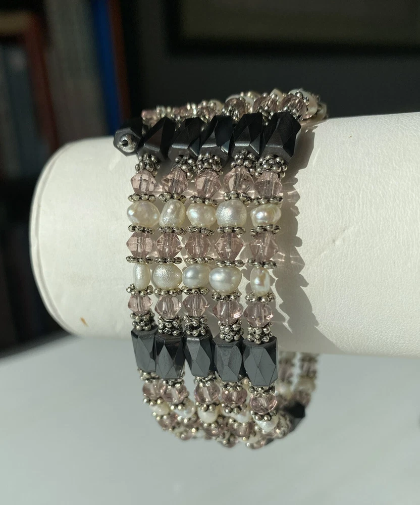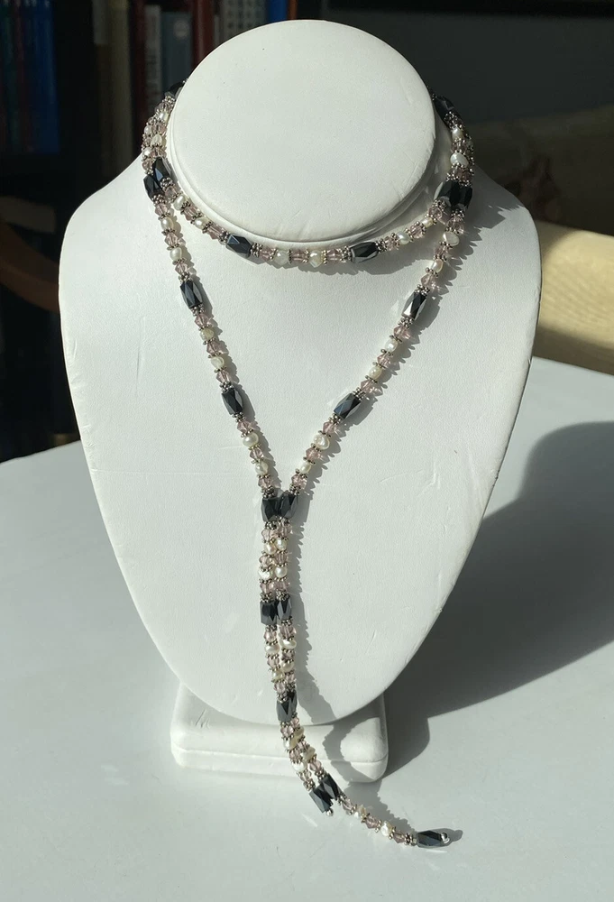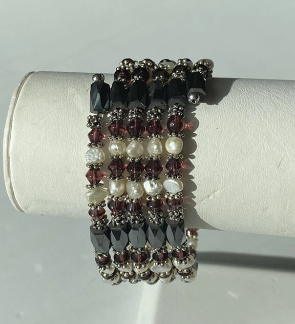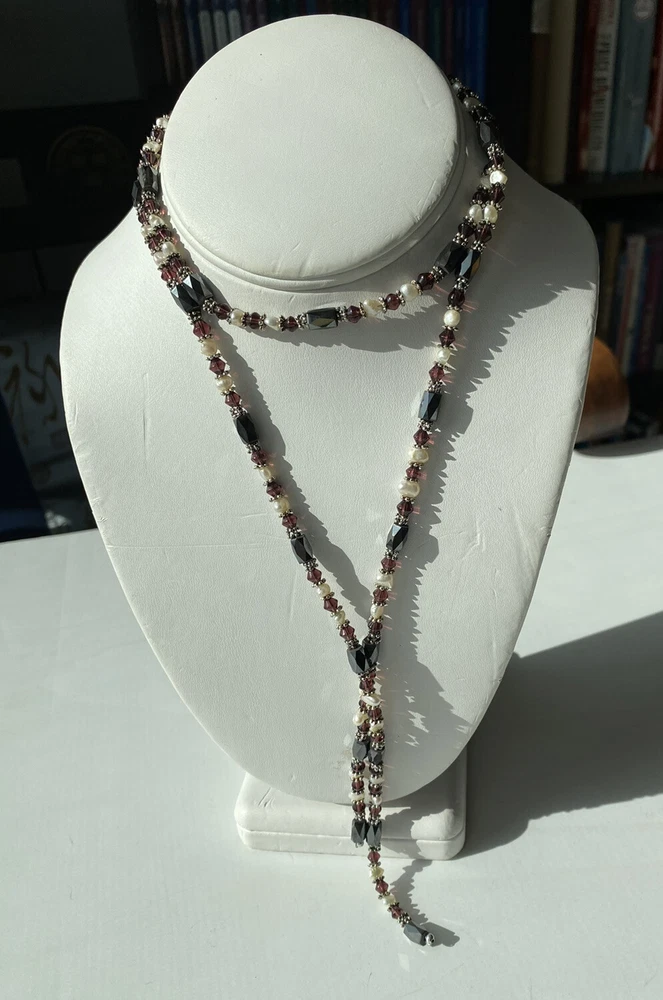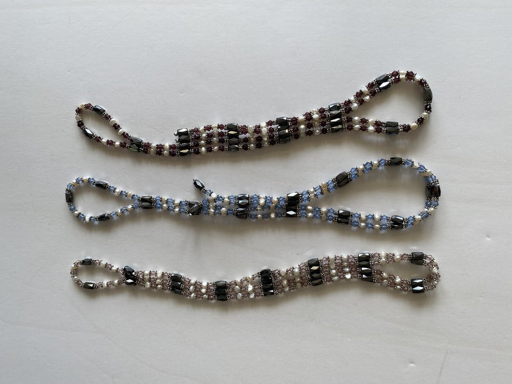 Good news! There is a clearance sale for this item. If you buy 3 necklaces/bracelets as the following description, you will get 1 for free. (whichever color is available). Original description: This price is for 3 necklaces/bracelets. Brand new. Strong magnetic hematite and fresh water pearls. 1 with light purple crystal, 1 with dark purple crystal and 1 with blue crystal. Decorative metal beads. The length is 36" or 91-92 cm. It is long and easy to create your own style of necklace, bracelet, anklet etc. Very good for those who don't like to use hooks. You may also DIY to make a set of necklace, bracelet, a pair of earrings, anklets or wrap of forehead, waist etc. Great gift for both young and old. Fast free shipping from US. Thanks for looking!