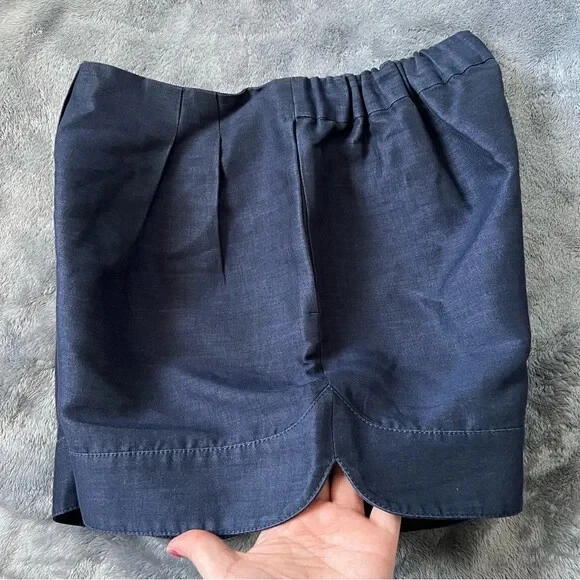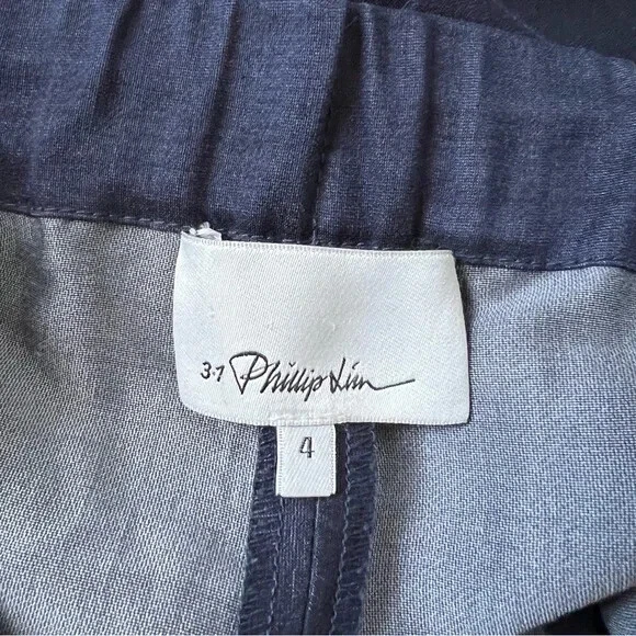 3.1 Phillip Lim Pleated Navy Silk Cotton Blend Pull On Shorts Size 4 Good pre owned condition! Pull on pants pleating at the front elastic back on waistband, Front pockets Unlined Colour: Navy Materials: 87 % Cotton 13% Silk Made in China •No Returns No Holds No Trades