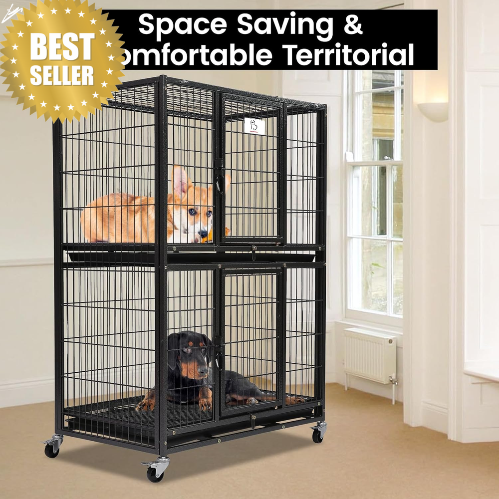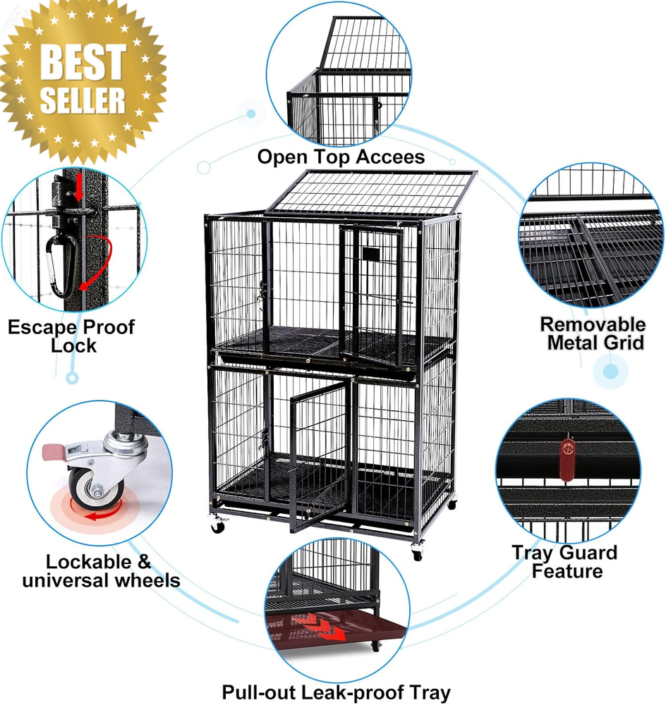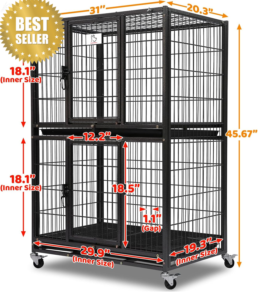 Fa lconbay_US 31" Stackable Heavy Duty Dog Crate 2-Tier Cage w/Wheels Tray for Small Dogs FEATURES 31” Two‑Tier Stackable Heavy Duty Dog Crate – Escape‑Proof Kennel w/ Lockable Wheels 🐕🛡️ 🪶 Product Description Maximize space and comfort for your small dogs with this 31″ two‑tier stackable heavy duty dog crate kennel ! Designed with stability, security, and convenience in mind, this vertical dog cage is perfect for multi‑pet homes, breeders, groomers, pet hospitals or boarding facilities . Each tier comfortably fits small breeds up to 45 lbs , and the sturdy integrated design reduces tipping or wobbling — giving you confidence and your pets a secure retreat. Built with escape‑proof locks, multiple access doors, smooth lockable wheels, and easy‑clean features , this kennel delivers strength and thoughtful everyday usability for stress‑free care and training. 🐾 📏 Specifications • Overall Size: 31″ L x 20.3″ W x 45.67″ H (Two Tiers) • Tier Height: 18.1″ per level • Fits Dogs: Small & medium breeds (up to ~45 lbs per tier) • Material: Heavy duty powder‑coated metal wire • Color: Black • Doors: Front and top access per tier • Wheels: 4 Lockable 360° casters • Flooring: Paw‑friendly metal grid + pull‑out tray 🔧 Key Features ✅ Two‑Tier Space‑Saving Design: Vertical crate system saves floor space while offering two secure areas — great for multiple pets or kennel use. ✅ Escape‑Proof Dual Lock System: Auto‑lock plus extra latch keeps even the cleverest pups safely inside. ✅ Multi‑Door Convenience: Front door and top door per tier make training, feeding, and interaction effortless. ✅ Easy to Move: Four 360° rotatable and lockable wheels let you reposition the crate anywhere with stability. ✅ Hygienic & Easy Cleaning: Removable tray and paw‑friendly grid make cleanup quick and efficient. ✅ Heavy Duty & Long‑Lasting: Thick metal construction with powder‑coated finish resists rust and energetic dogs. ✅ Comfort & Safety: Floor grid spacing and solid build keep pets elevated, comfortable, and secure. 🌟 Why You’ll Love It ✔️ Saves floor space without compromising strength. ✔️ Dual access encourages interaction and reduces anxiety. ✔️ Secure auto‑locks give peace of mind. ✔️ Smooth mobility with secure placement using lockable wheels. ✔️ Easy cleanup keeps your space hygienic. ✔️ Great for breeders, groomers, vet clinics, or multi‑pet households! 📦 What’s in the Box • 2 × Tiered Dog Crate Sections • 2 × Paw‑Friendly Metal Floor Grids • 2 × Pull‑Out Leak‑Proof Trays • 4 × Lockable 360° Wheels • Assembly Screws & Hardware • User Manual 💡 Tips for Use • Measure your dog’s length & height, then add 2–4″ for a comfortable fit. • Use top doors for easy interaction during training or feeding time. • Lock wheels for stationary use and unlock for easy relocation. • Clean trays regularly to maintain a tidy and healthy crate environment. 📦 Fastest Shipping Guaranteed Unlike other stores that offer cheaper products but come with delivery delays of up to 30 days, we take pride in offering fast and reliable shipping. Based in the American, we guarantee that your order will be delivered within 3–8 days, with no unexpected delays (unless under rare circumstances). When you shop with us, you’re choosing speed and satisfaction. 📦🚚 ❓ FAQs Q1: What size dogs are suitable for this crate? 👉 Ideal for small to medium dogs up to ~45 lbs per tier — always measure your pet for best fit. Q2: Can the crate stay stable even when moved? 👉 Yes — lockable casters ensure stability once in place. Q3: Are the trays easy to remove? 👉 Absolutely — the pull‑out trays make cleaning fast and mess‑free. Q4: Do both tiers have doors? 👉 Yes — each level features a front and top door for easy access. Q5: Is assembly difficult? 👉 Not at all — simple assembly with included hardware and instructions. Item model number 4G-285S-0KP5 Age Range Description All Life Stages Style Durable Number of Items 1 Target Audience Keyword dogs Breed Recommendation Medium size breed Product Dimensions 31"L x 20"W x 46"H Material Alloy Steel Model Name 2-Tier dog cage Directions Suitable for small to medium-sized dogs Is Discontinued By Manufacturer No Specific Uses For Product Indoor Item Package Dimensions L x W x H 44 x 31.5 x 4.5 inches Included Components Lockable Caster Wheels, Manual Instruction, Removable Tray & Floor Grids, Safe Locks Gap Size 1.1 Inches Item Weight 60.6 Pounds Specific Uses for Product Indoor Item Dimensions LxWxH 31 x 20 x 46 inches Color Black Manufacturer Station Size 31.0"L x 20.0"W x 46.0"H 31.5 inches x 44.0 inches x 4.5 inches. Weight: 60.6 lb PAYMENT We accept all payments via Ebay using Credit Cards , Affrim, PAYPAL , Apple Pay and many others SHIPPING We are always working hard to ensure your package arrives as soon as possible. Please understand that some factors like weather, high postal traffic, and the performance of shipping companies are outside of our control. DELIVERY & RETURN POLICY We offer a 30-Day Return Policy on items in which you are not completely satisfied with. You have the option of a full-refund.