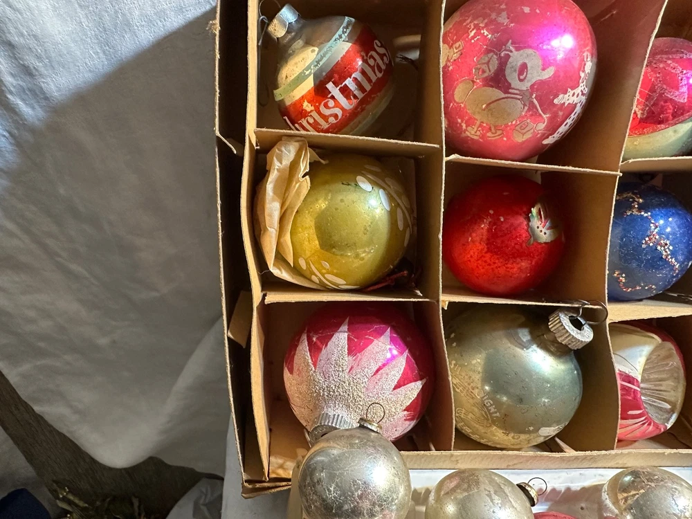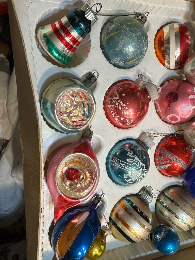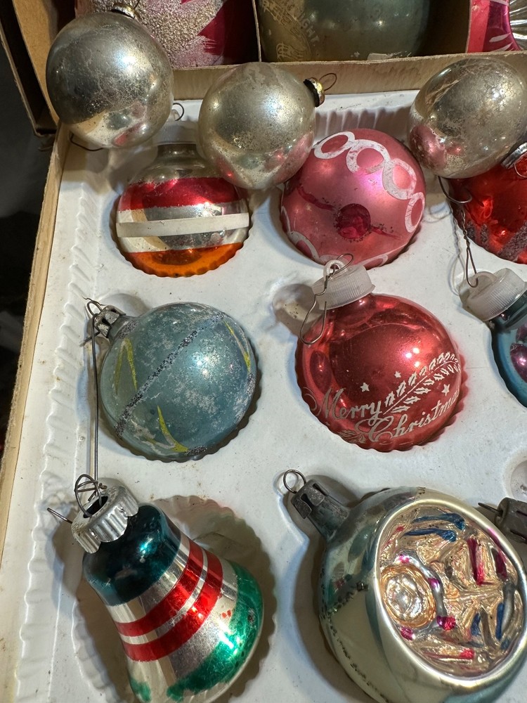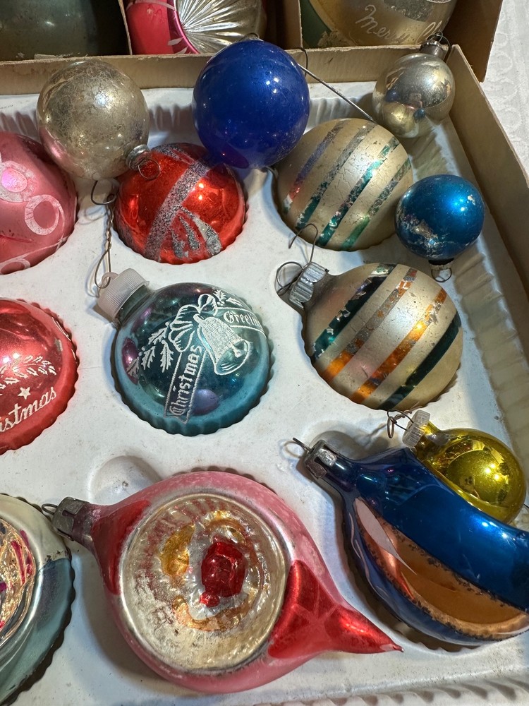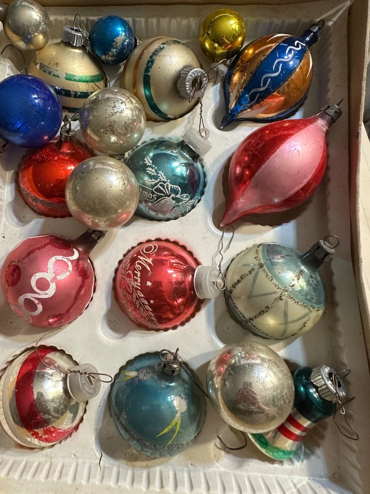 Vintage mercury, glass and vintage glass ornaments various sizes colors styles