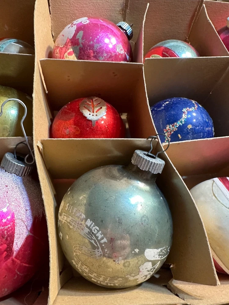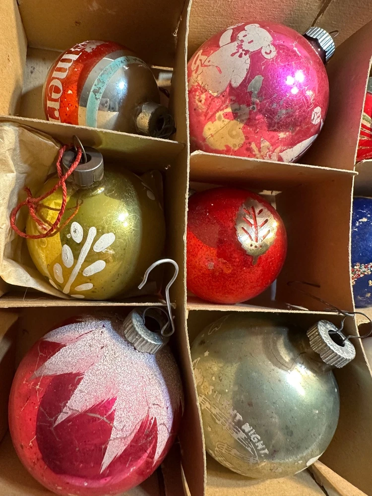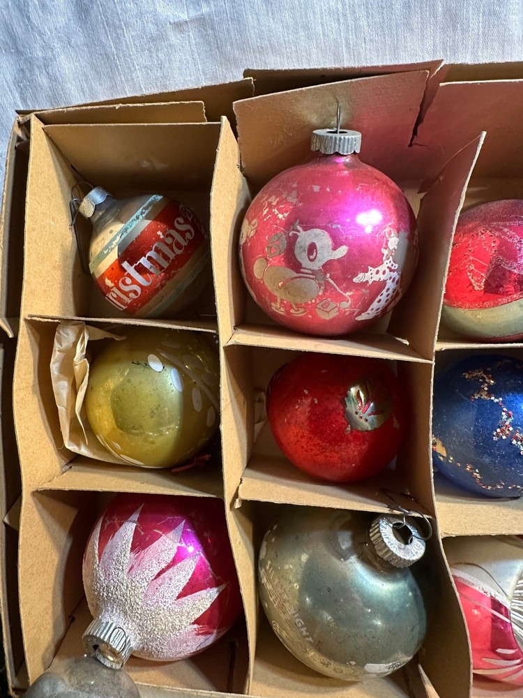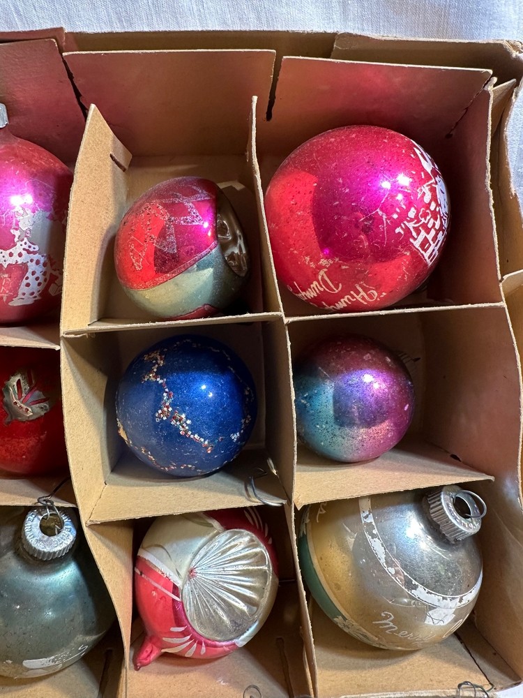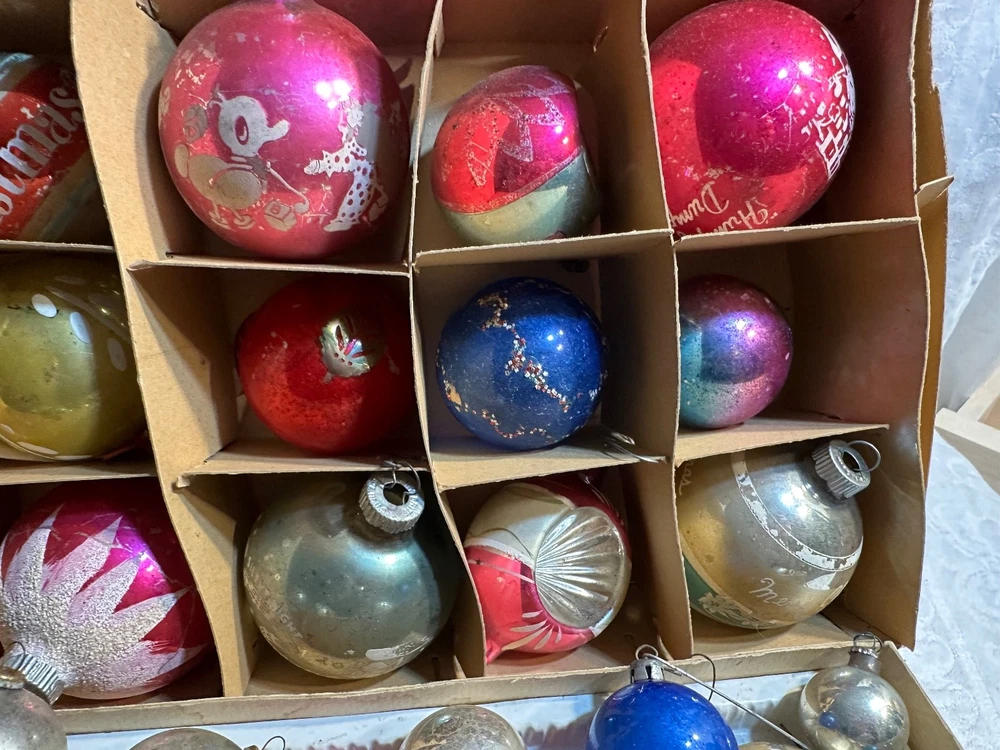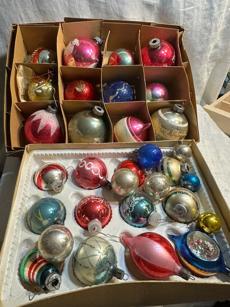 Vintage mercury, glass and vintage glass ornaments various sizes colors styles