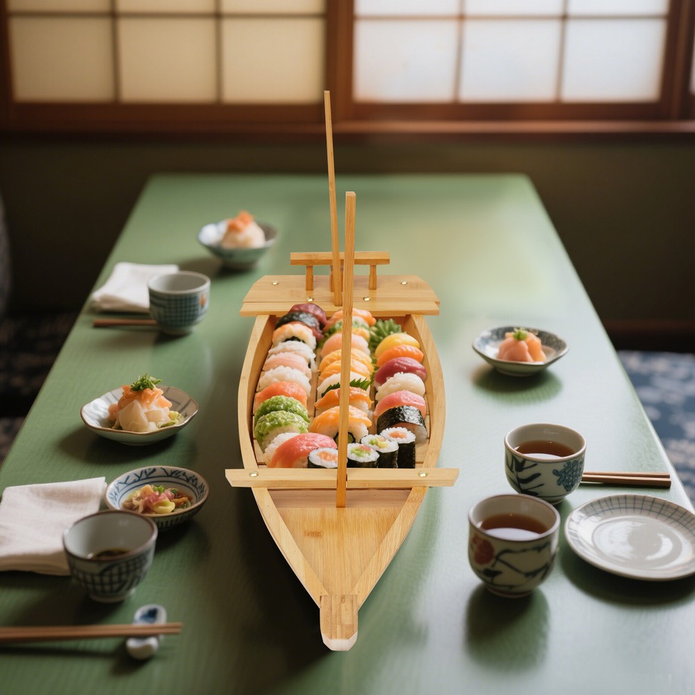 Bamboo Sushi Tray Plate - Japanese Raft Style Snack Holder - Easy to Clean